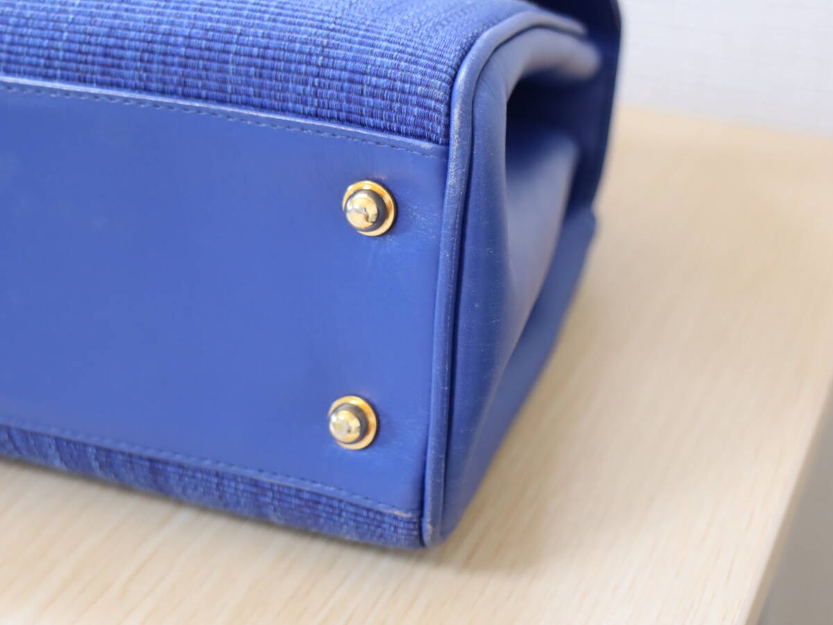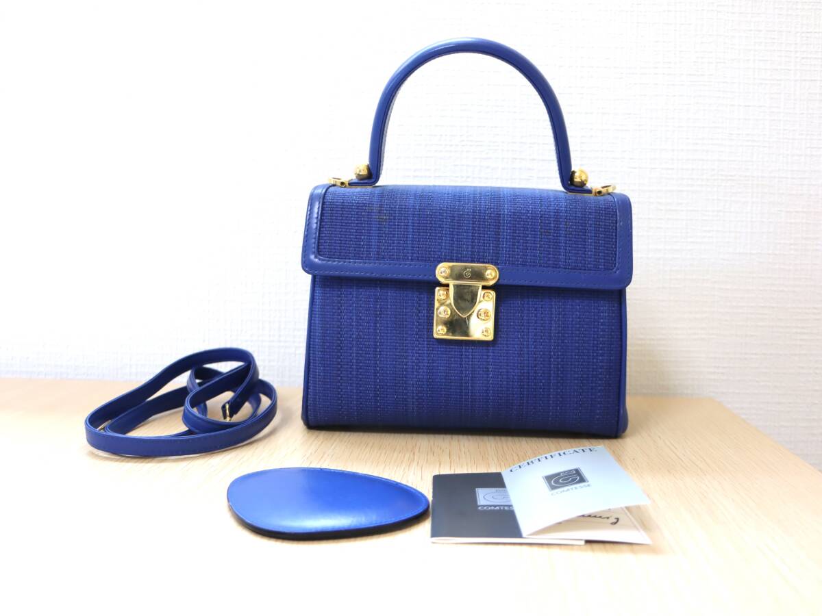 COMTESSE コンテス ホースヘア×レザー ブルー ゴールド金具 2WAY ハンドバッグ ショルダー バック ドイツ製