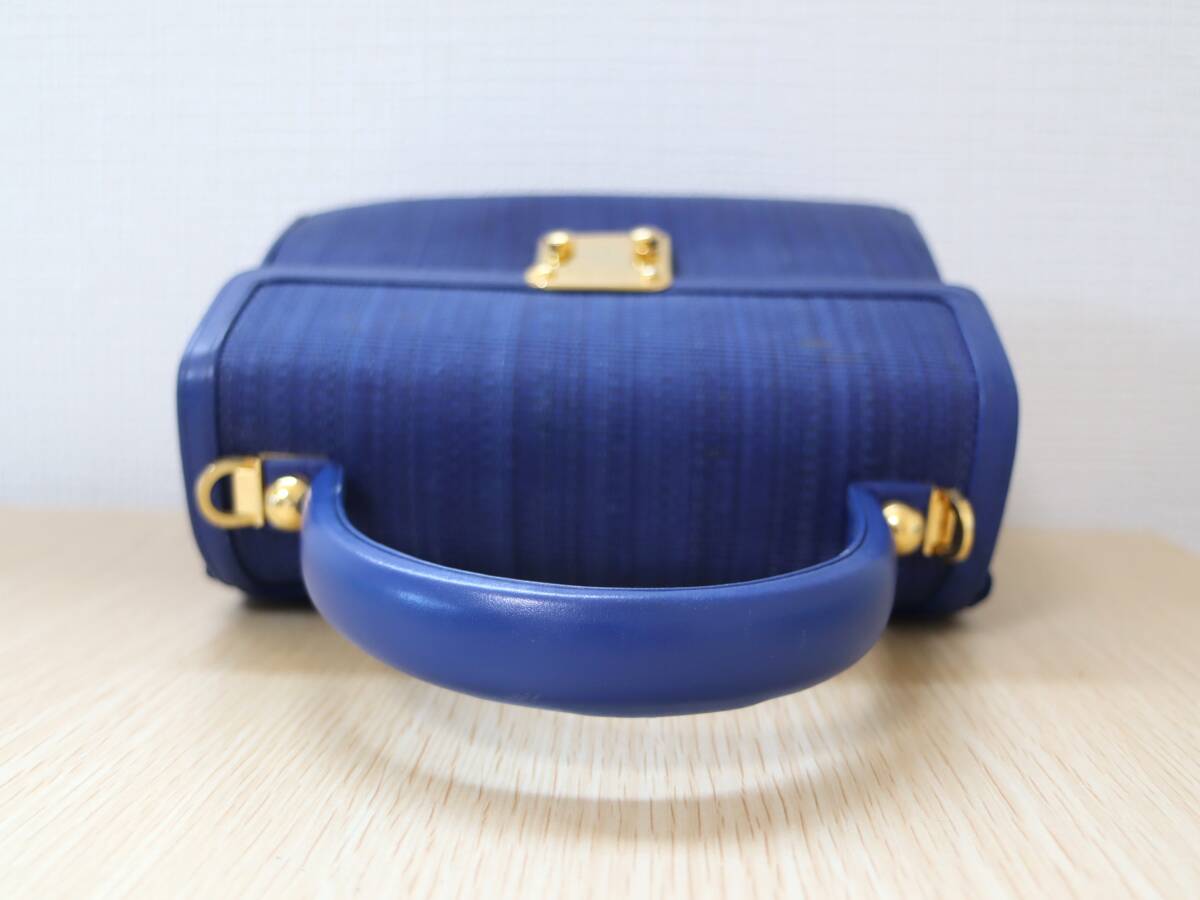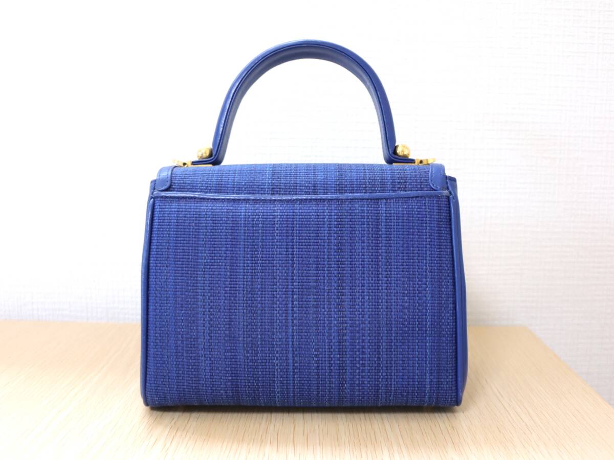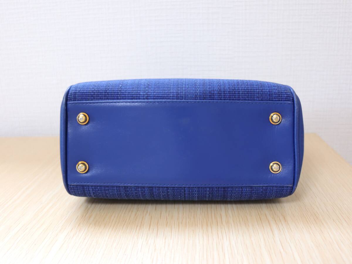 COMTESSE コンテス ホースヘア×レザー ブルー ゴールド金具 2WAY ハンドバッグ ショルダー バック ドイツ製 セレブ (管90218)