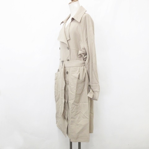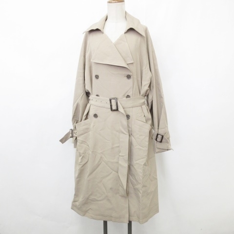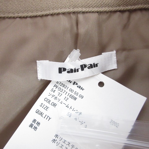 未使用品 ペアペア PairPair トレンチコート ダブル ロング丈 ベルト ボリューム袖 ベージュ ブラウン F レディース