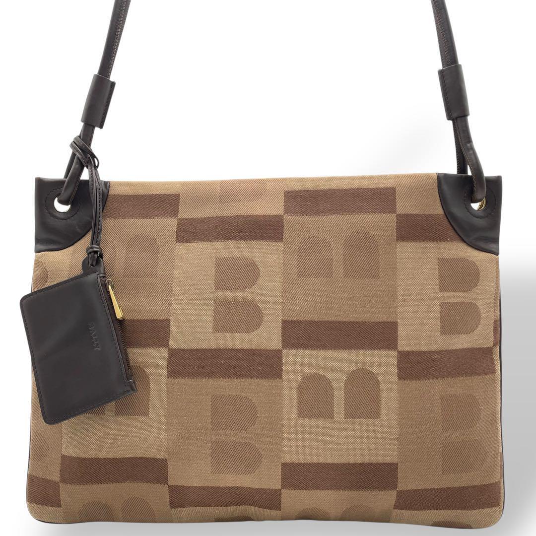 BALLY ショルダーバッグ キャンバス ブラウン 肩掛け ミニケース付き