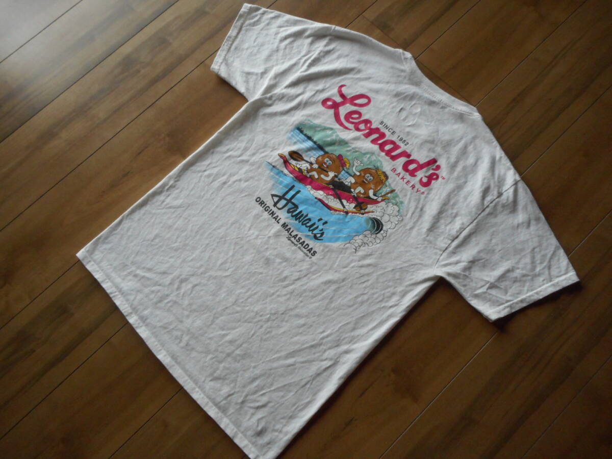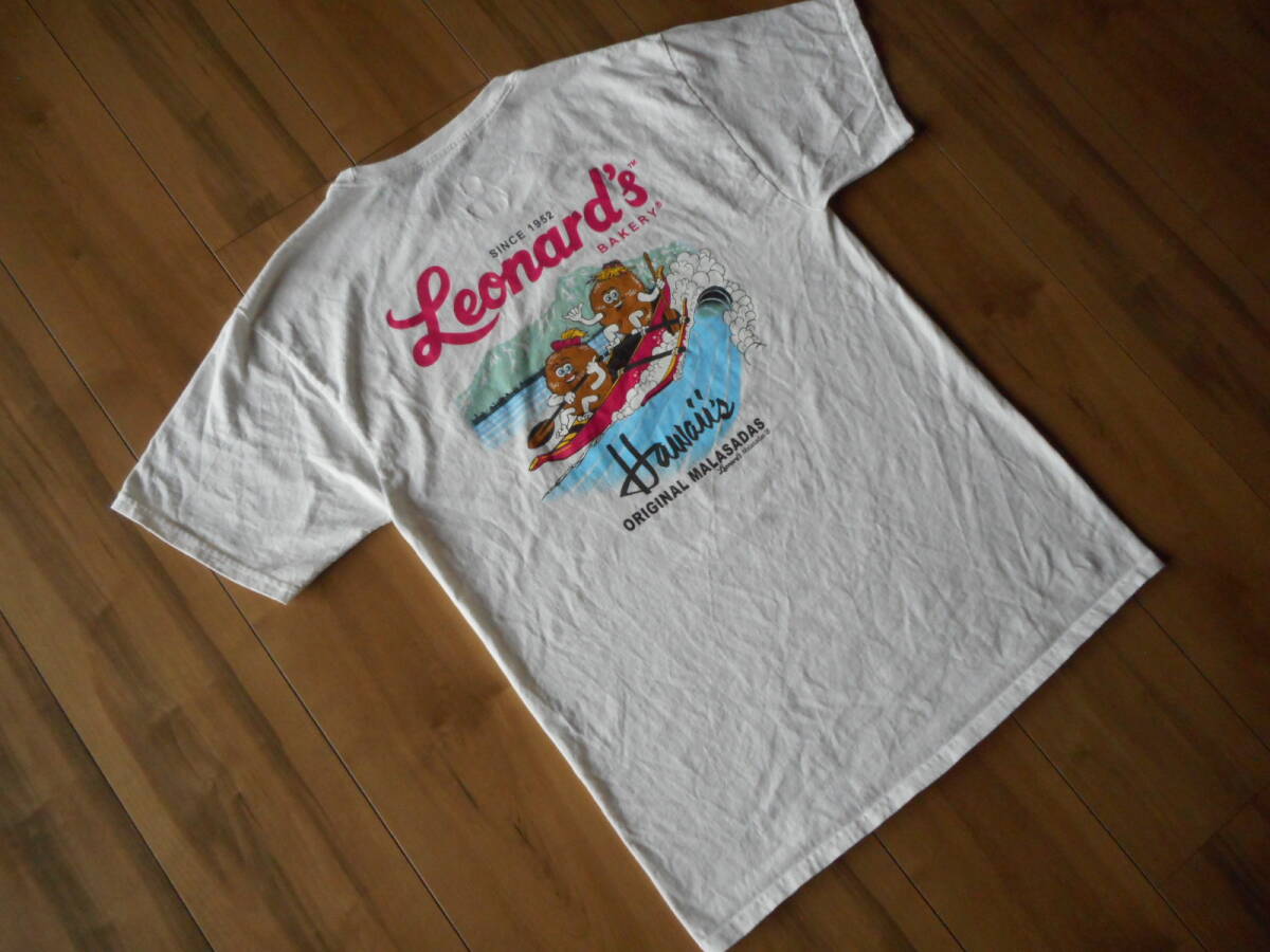 レア 00s ハワイ 限定 Leonard's Bakery レナーズベーカリー レナーズ マラサダ バックプリント アメリカ Hanes ヘインズ 白 Tシャツ