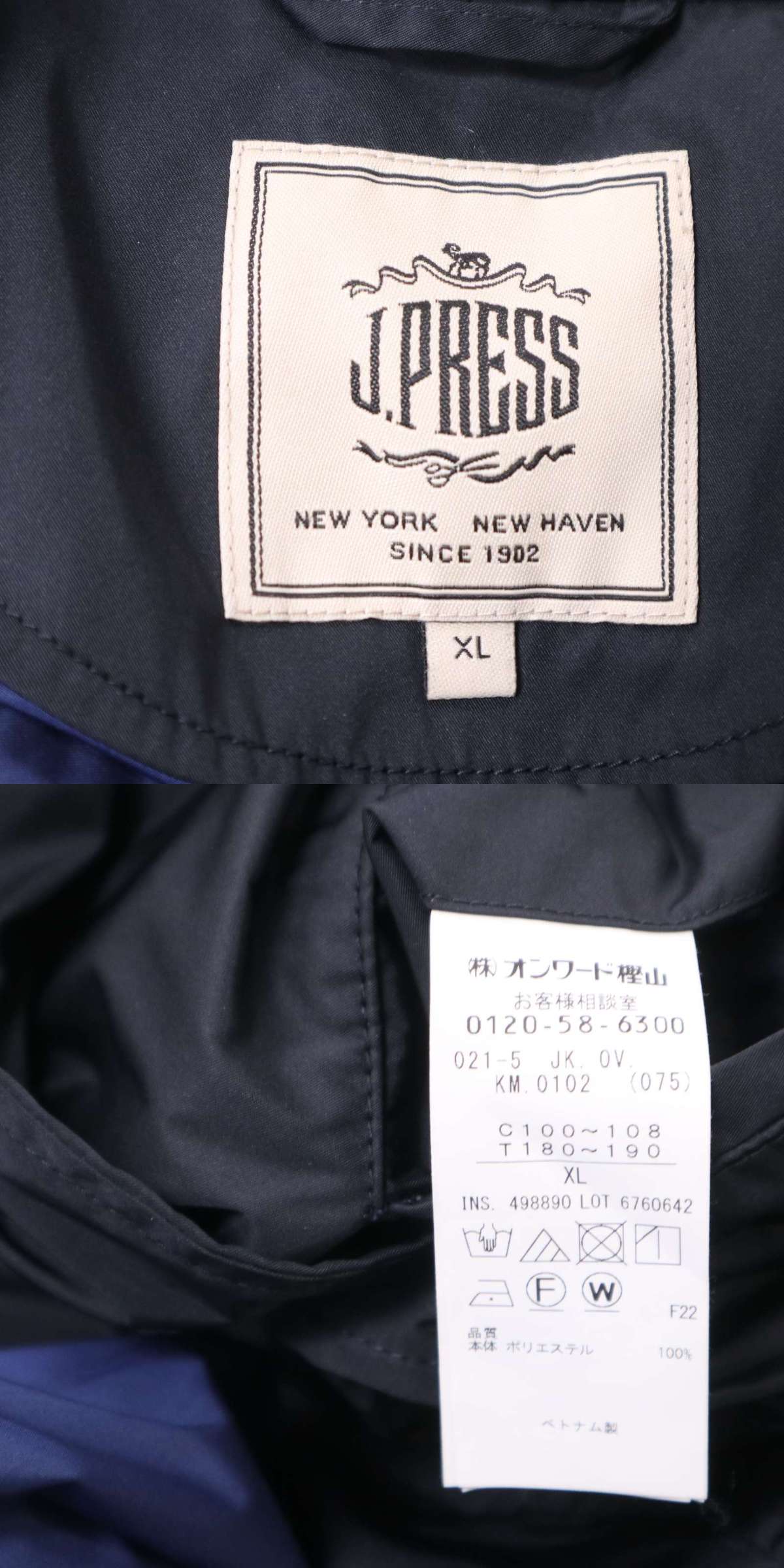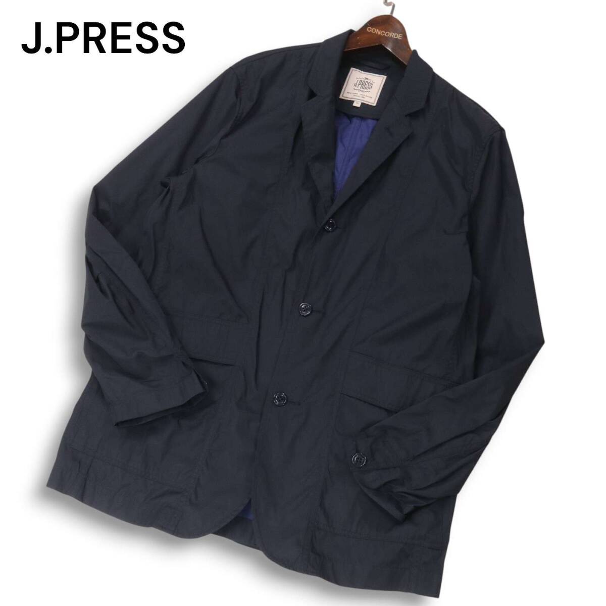 J.PRESS ジェイプレス 通年 メモリーツイル★ クラーク アンコン ジャケット Sz.XL メンズ ネイビー