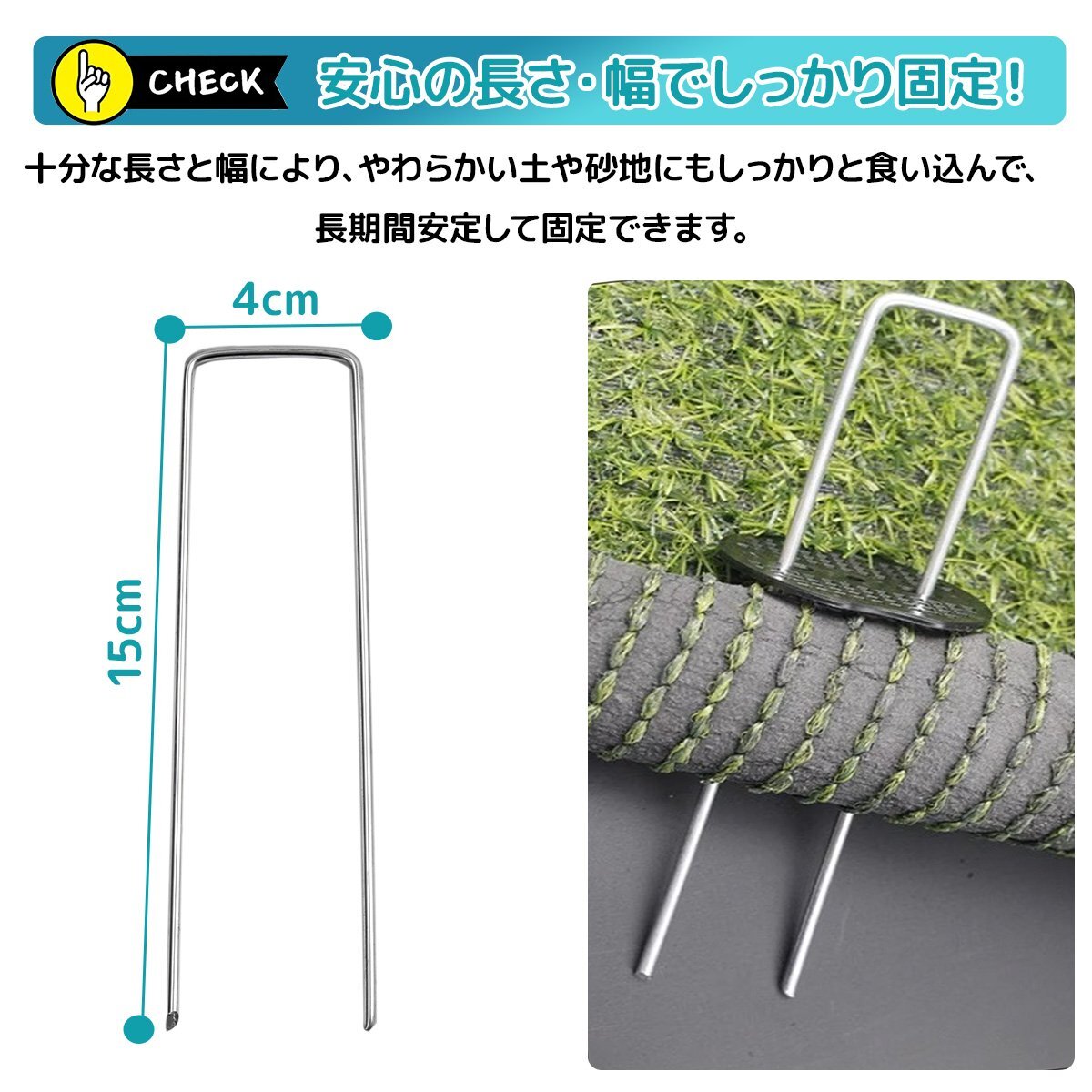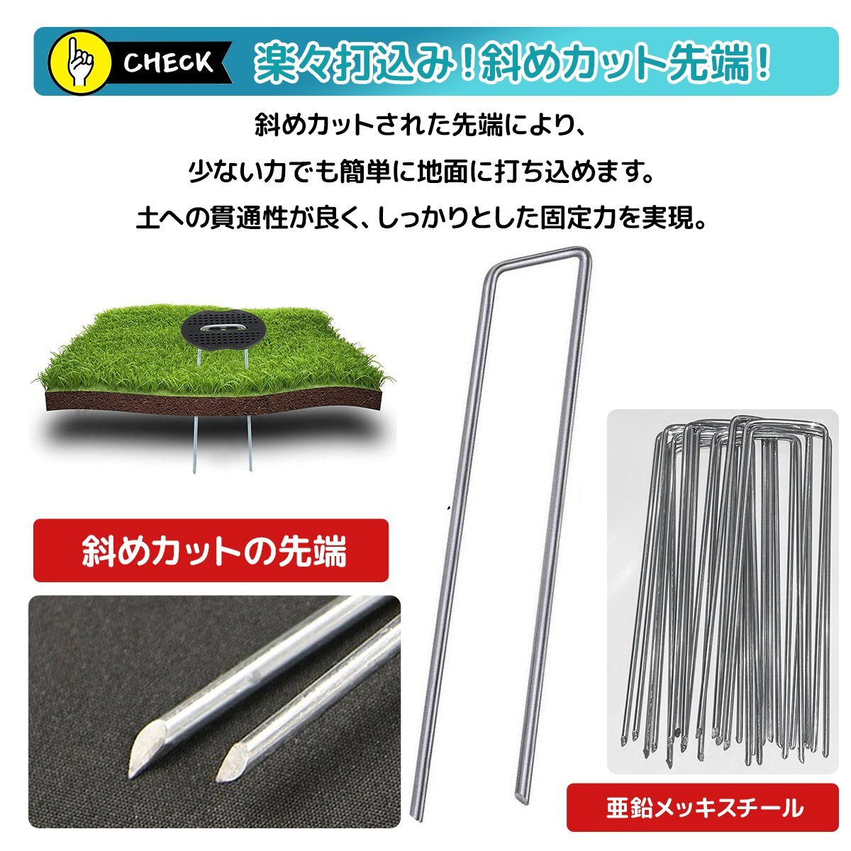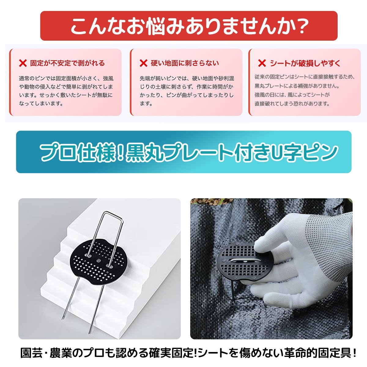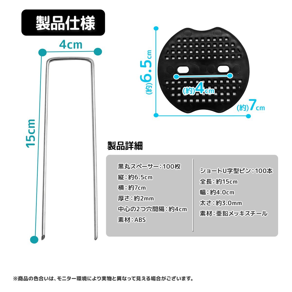 【全国一律送料無料】防草シート 固定ピン 100個セット 黒丸プレート付き U字ピン 長さ15cm 斜めカット 楽々打込み 穴あき防止 幅調整可