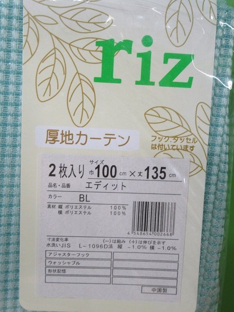 未使用 ユニベール riz 厚地カーテン 100×135cm 2枚入 エディット BL ブルー ワッフル 洗える フック付 アウトレット