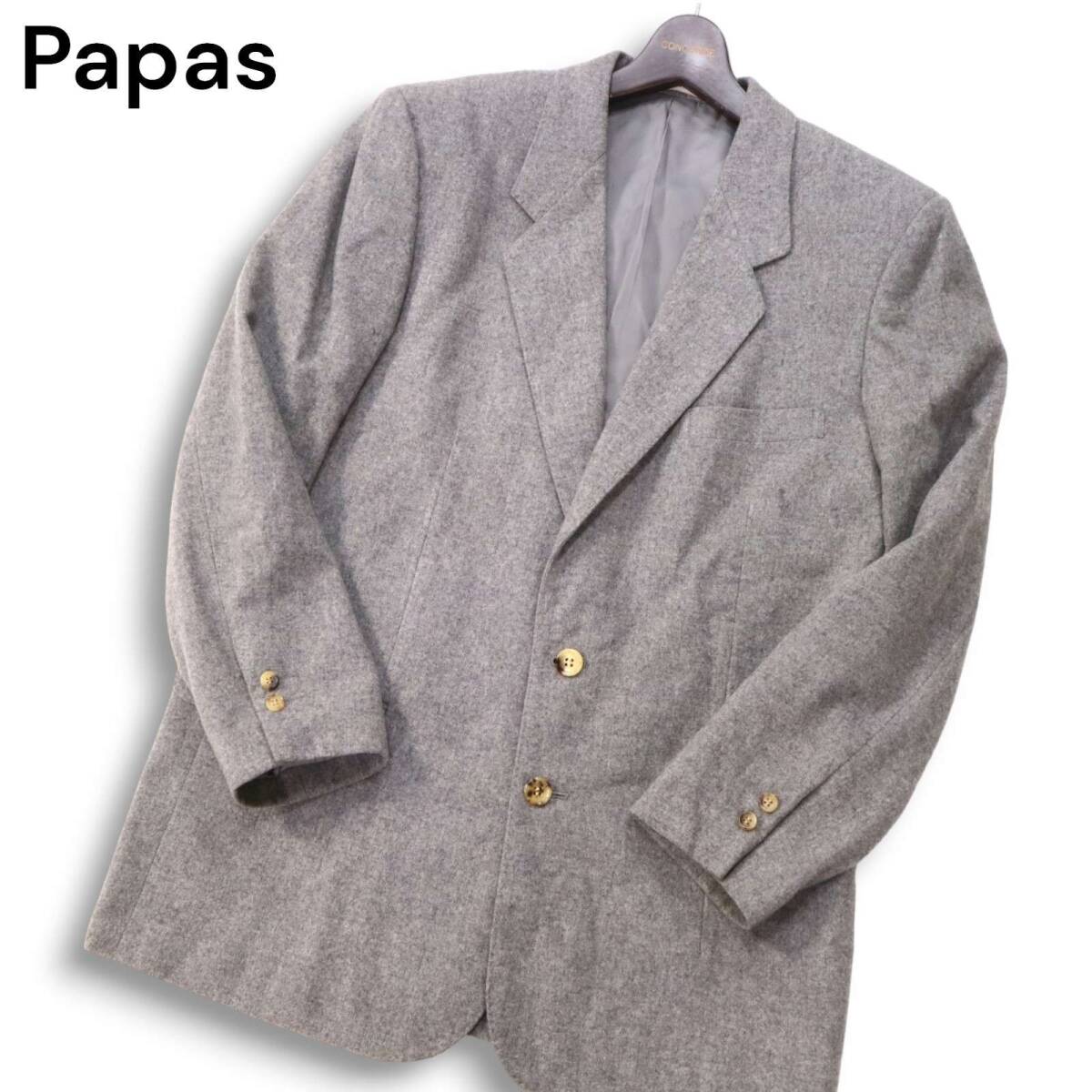 Papas パパス 秋冬 ウール ツイード テーラード ジャケット Sz.S 44 メンズ グレー