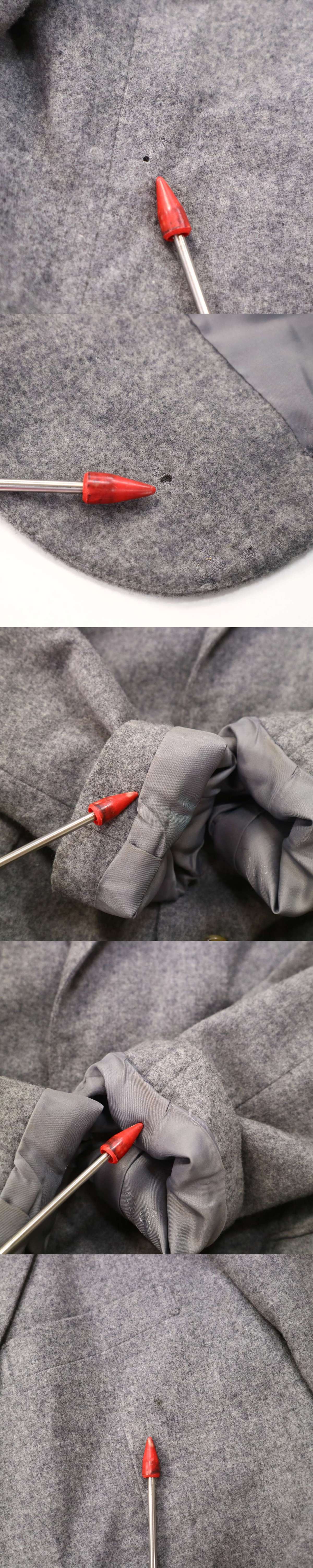 背中、裾にごく小さな穴、所々にごく小さ汚れがございます。着用に問題はございません。