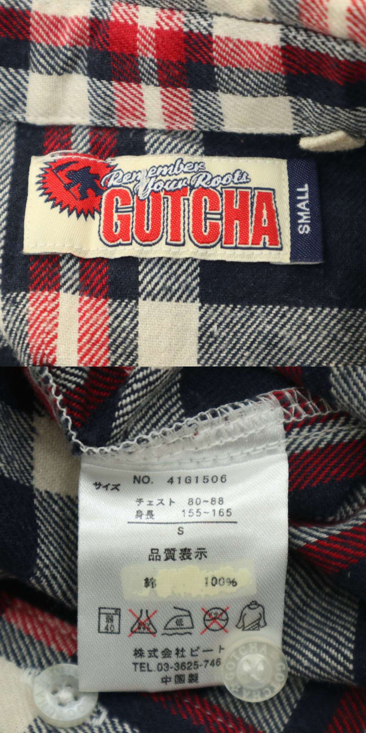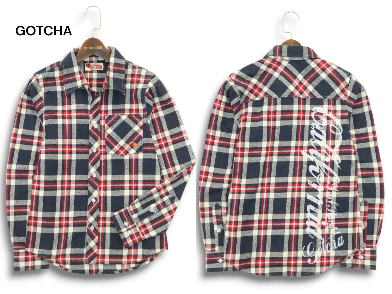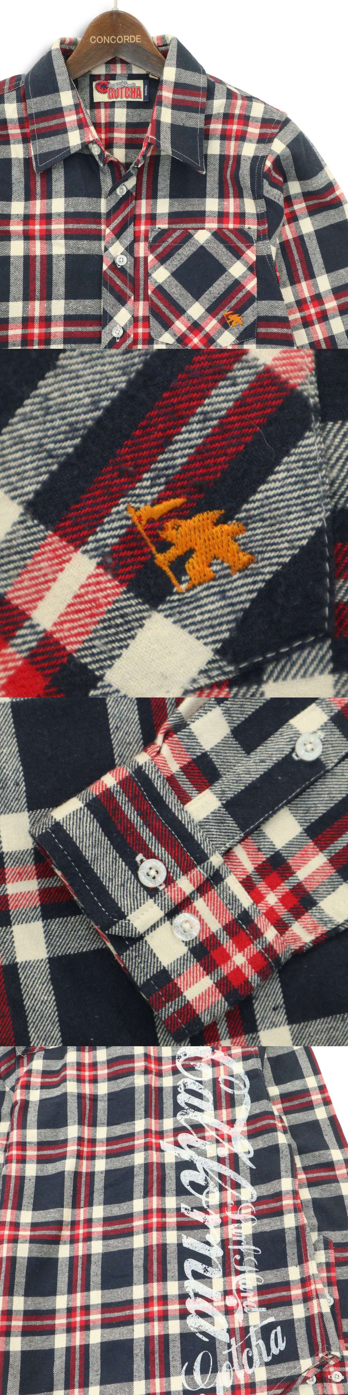 GOTCHA ガッチャ 秋冬 バック ロゴ★ 長袖 チェック ネル シャツ Sz.S メンズ ネイビー サーフ