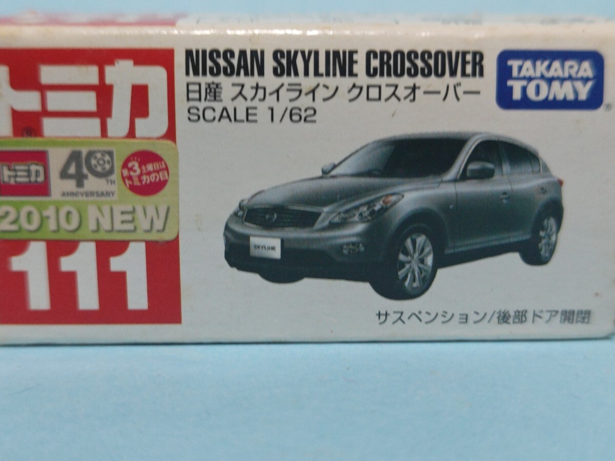 アクセスありがとうございます。下記の情報をご確認ください。トミカ日産スカイラインクロスオーバー、未開封未使用です。新品ではないため完璧なものをお求める方は入札はご遠慮ください。外箱は経年による傷みキズ、折れ目や破れなどがある場合もございます。ノークレームノーリターンノーサポートでお願いいたします。日本郵便で発送致します。他にも出品しております。よろしくお願いいたします。落札後3日以内に取引ナビよりご連絡お願い致します。3日以内にご連絡がない場合は落札者都合により取り消しをする場合がございます。ご入金は7日以内にお願いいたします。入金が確認次第発送致します。私の仕事の都合によりご連絡、発送が遅れることがございます。ご了承ください。