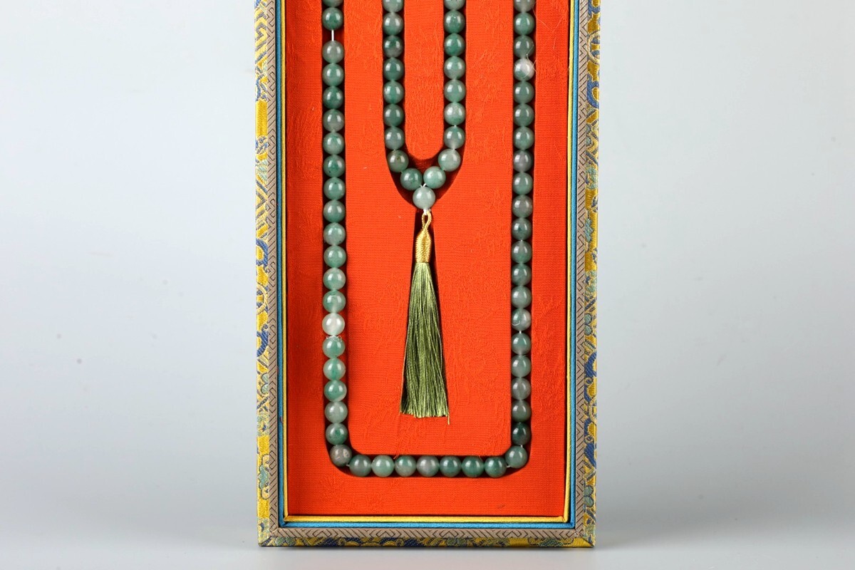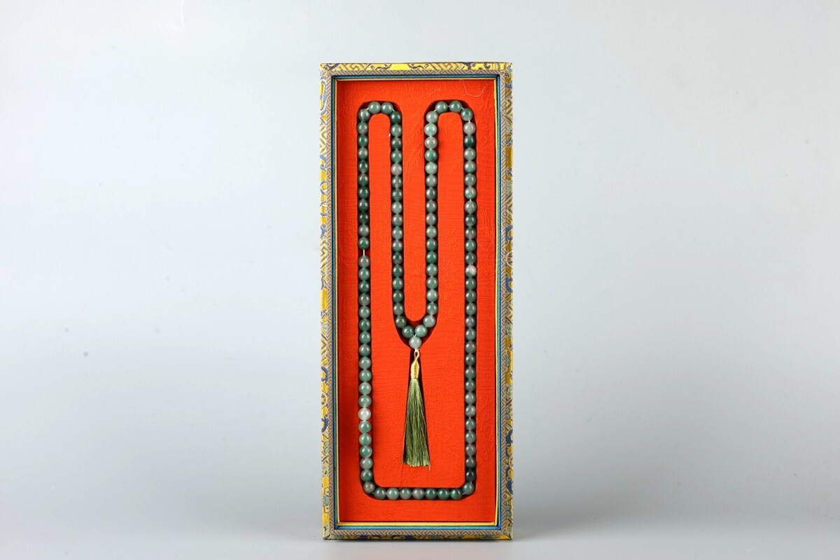 時代物 翡翠彫 108粒仏珠 手持 ネックレス【仁】極細工 手彫り 裝身具 古賞物 中国古美術 蔵出