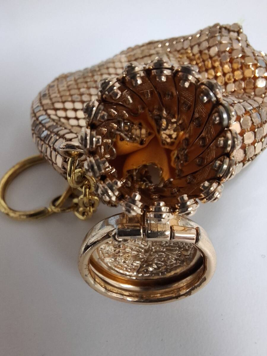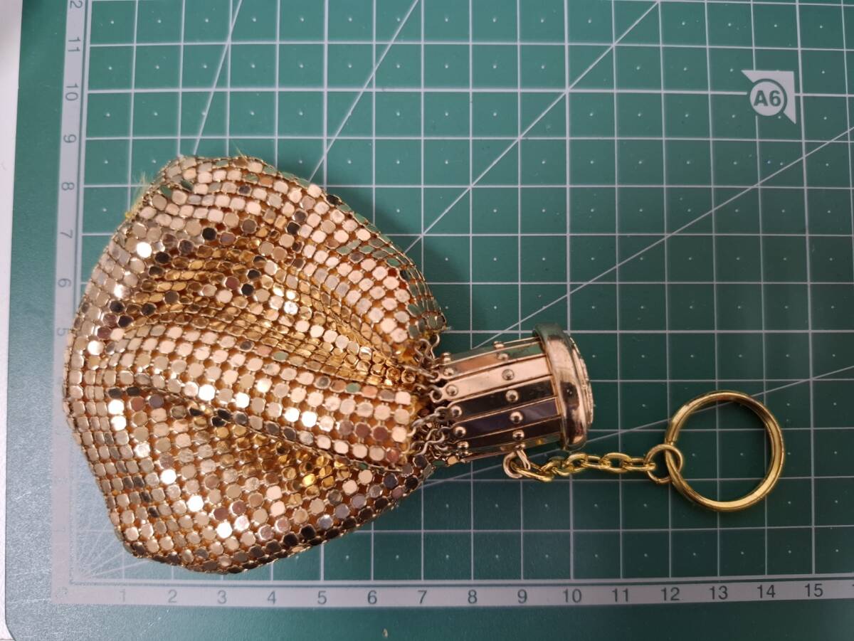 【貴重】三匠刻印 ミニポーチ 蛇腹口金 小銭入れ ゴールドカラー レトロ 稀少 コインケース 巾着 キーホルダー