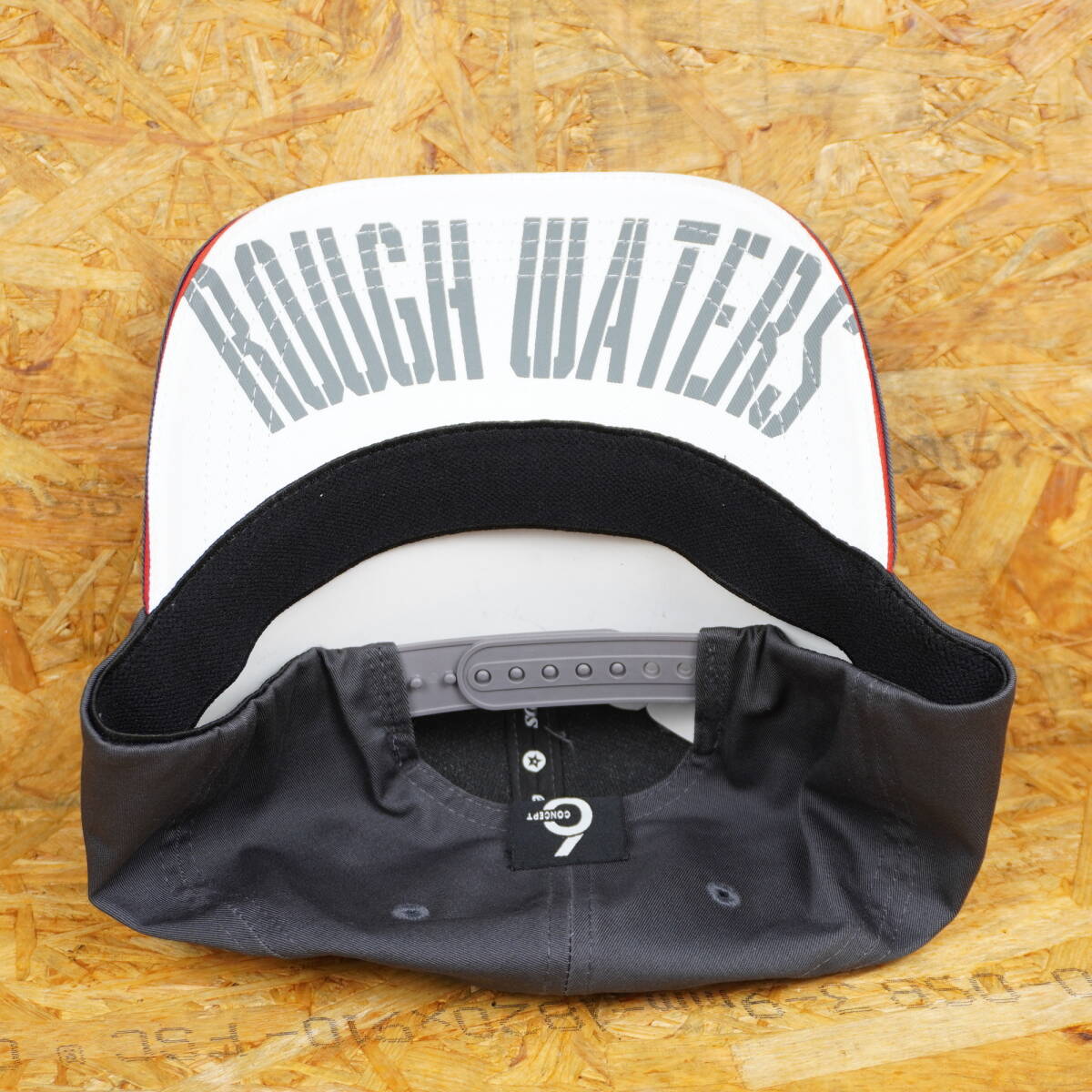 つば裏にも「ROUGH WATERS」ロゴがプリントされ、アジャスター付きでサイズ調節が可!