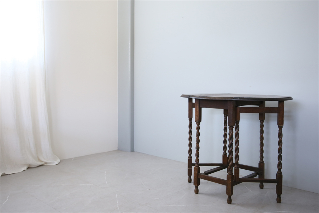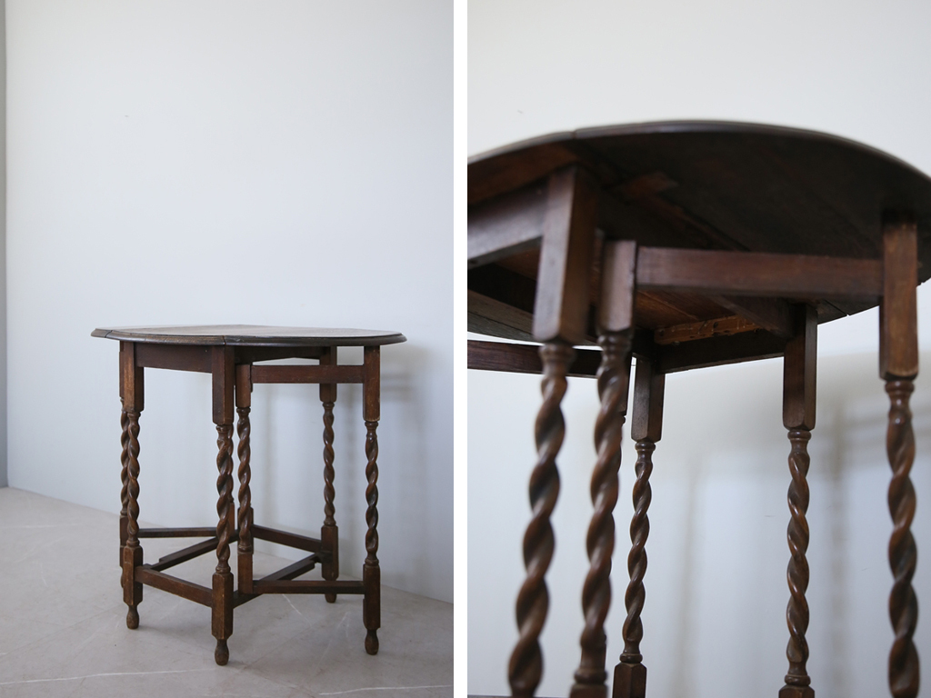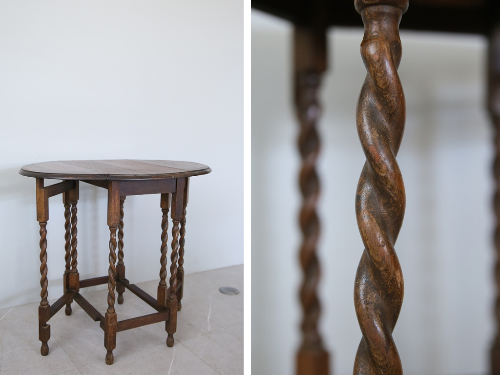 イギリスの田舎で見つけたツイストゲートレッグテーブルです。