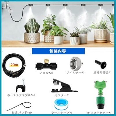 •   【セット内容】20mホースx1、蛇口コネクターx3、標準ティー(ミストノズル)x20、結束バンドx40、ホースステップルx40、カッターx1、シールテープx1、終端用部品x1、取扱説明書x1。