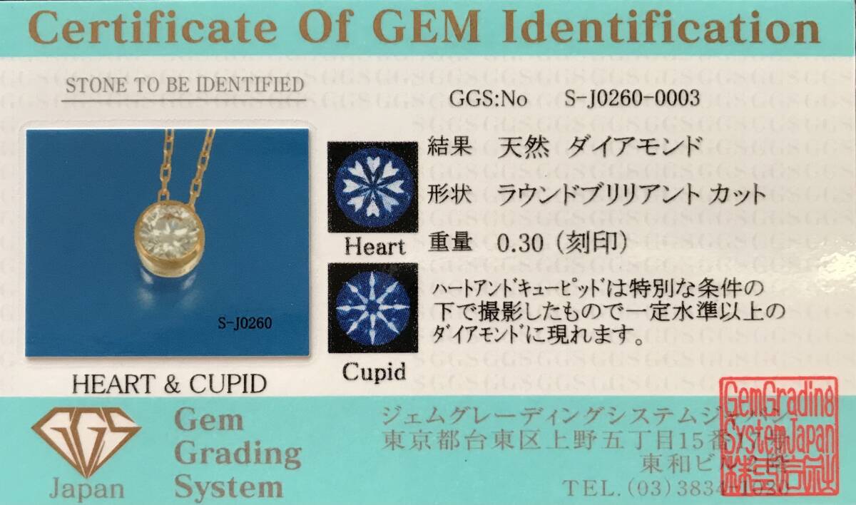 0.30ct H&C 良質天然ダイヤモンド K18 ネックレス 鑑別カード付