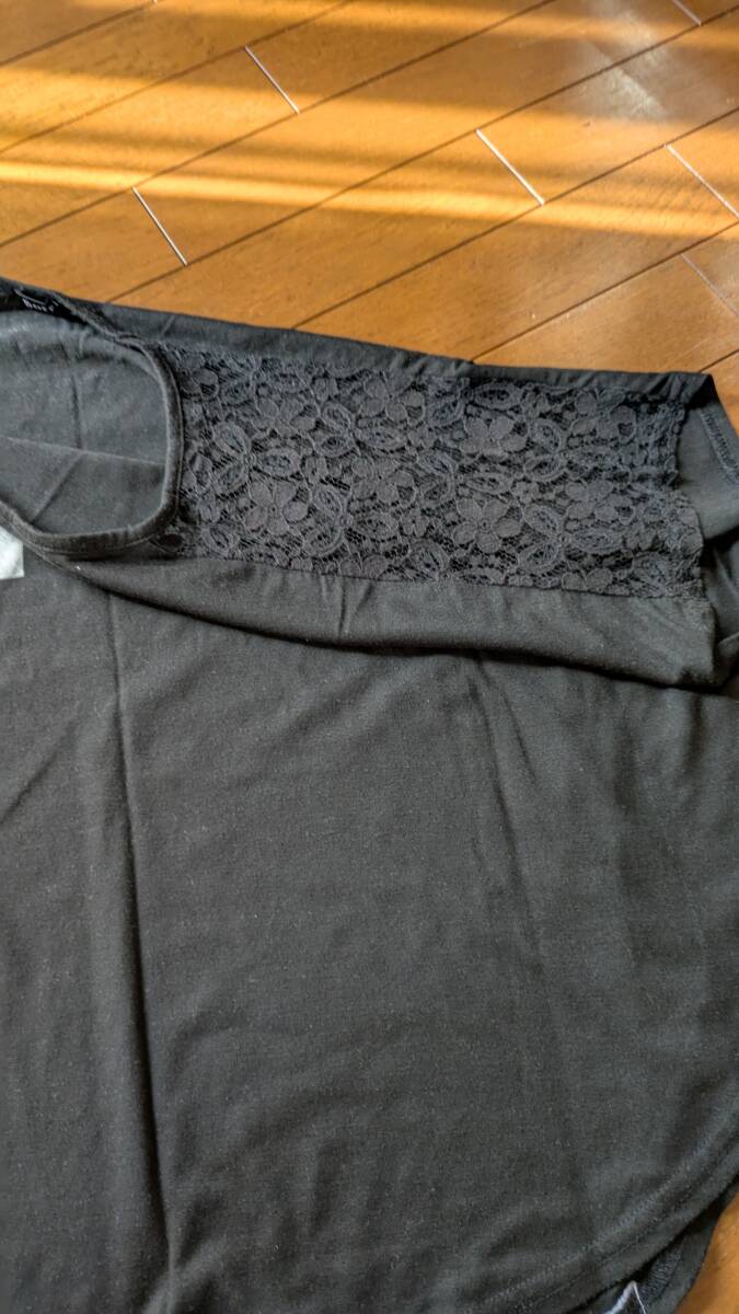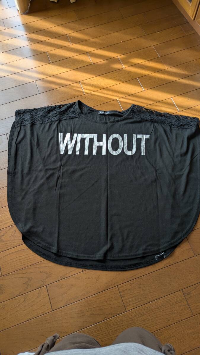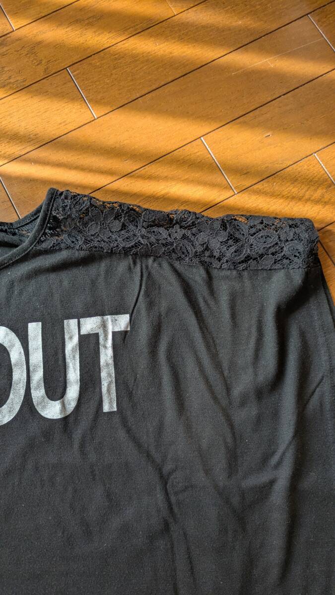 ★ロゴTシャツ ドルマリンTシャツ★Lサイズ ざっく 肩部レース素材 体形カバー
