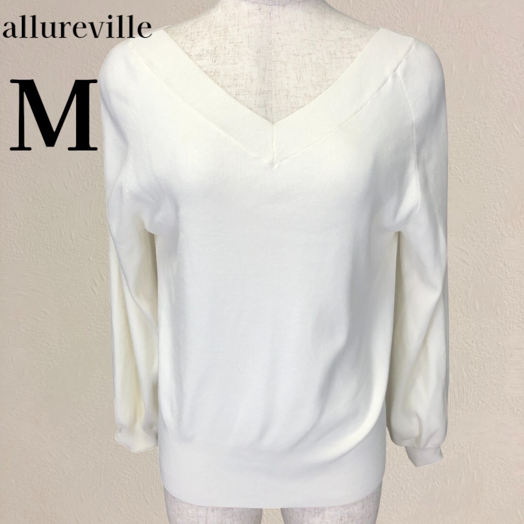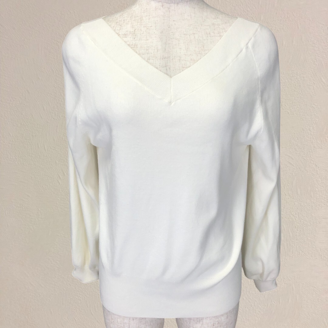 【美品】アルアバイル Vネック 長袖 ニット セーター 2 M ホワイト 白