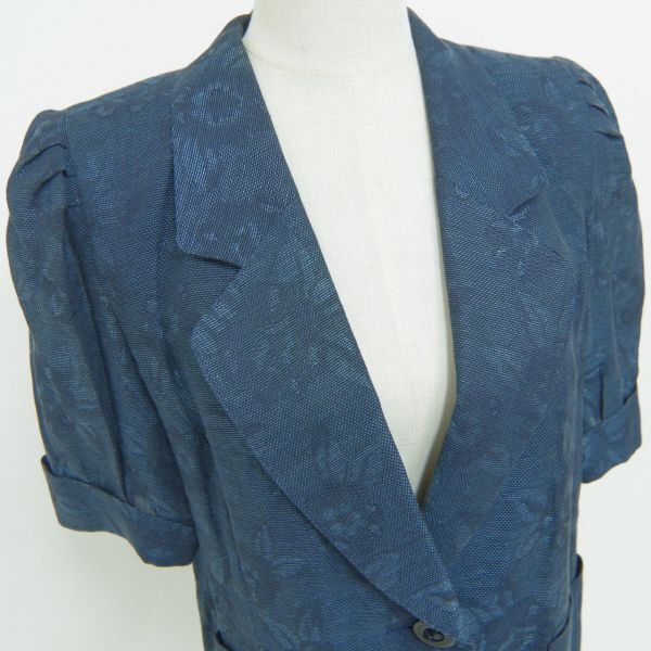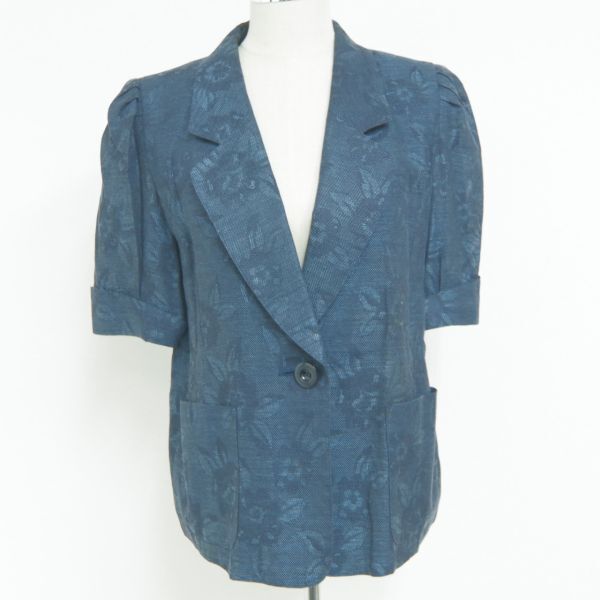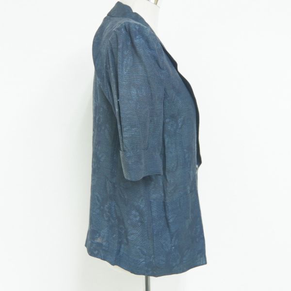 #01【即決】◇Leilian レリアン◇半袖リネン混ジャケット トップス ネイビー 大きいサイズ13+ #911792