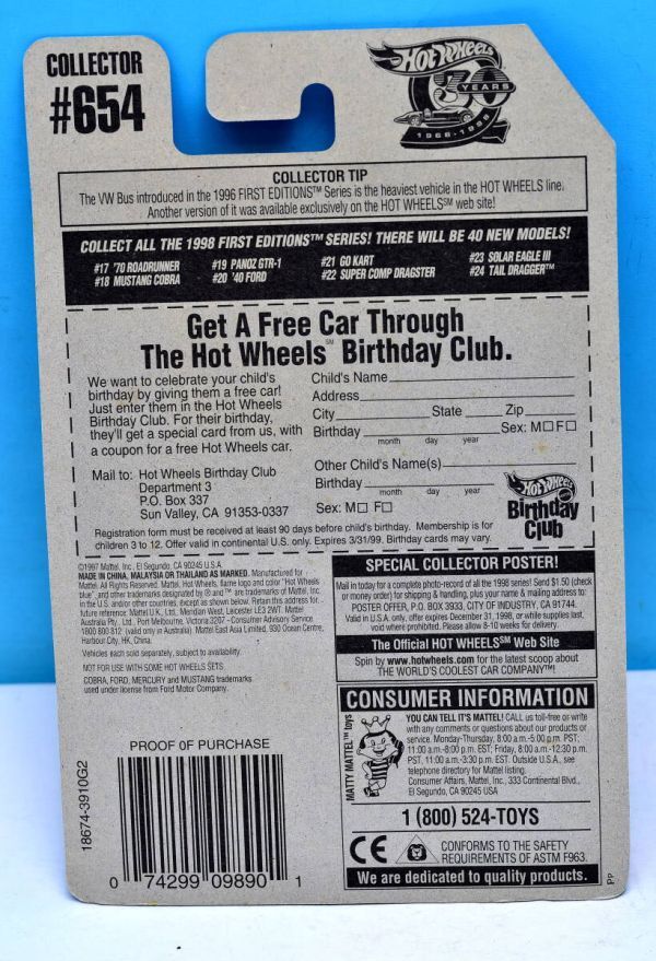 即決 未開封 MATEL マテル Hot Wheels ホットウィール 1998年 FIRST EDITIONS '40 フォード #654