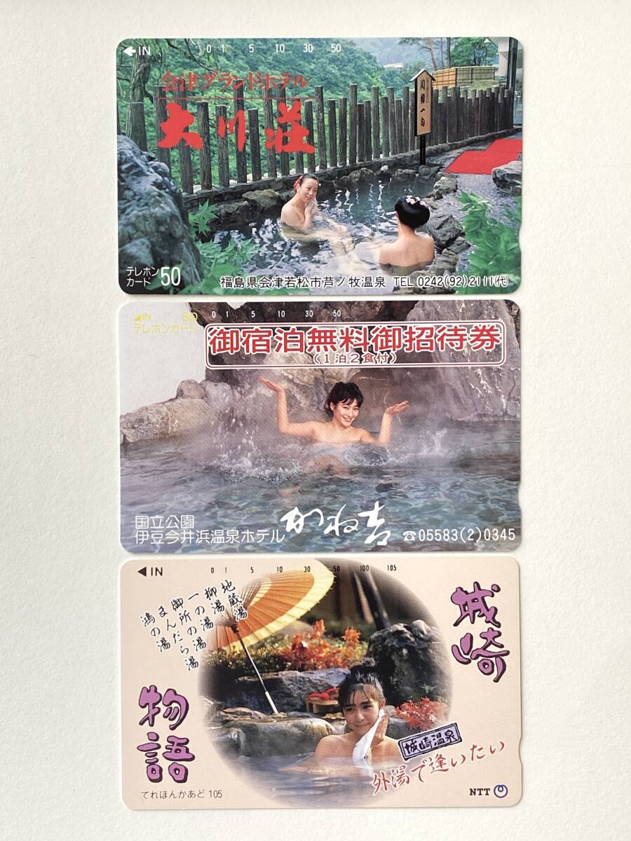 12月終了!【T274】温泉 テレカ 50度数2枚 105度数1枚 合計3枚 セット 未使用 テレホンカード 女性 モデル 入浴 湯けむり 宿屋 ホテル 旅館