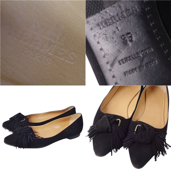 | 美品 エルメス HERMES パンプス フラットシューズ スウェードレザー タッセル ポインテッドトゥ レディース 35(22cm) |