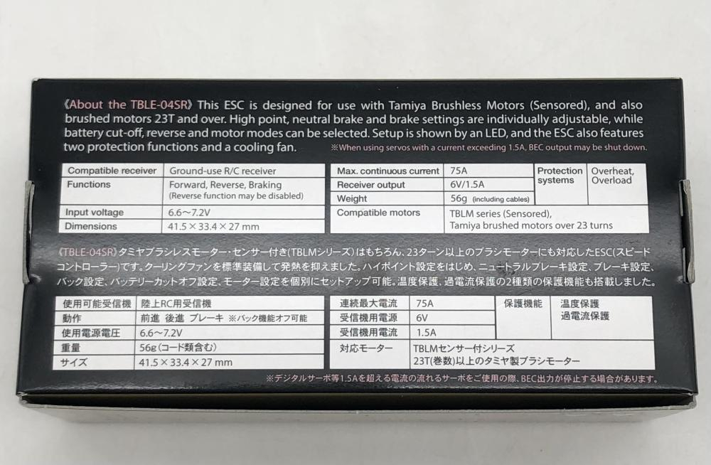| 209007544798)開封 TAMIYA タミヤ RCシステム TBLE-04SR ブラシレス エレクトロニック スピードコントローラー 04SR センサー付 |