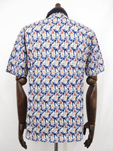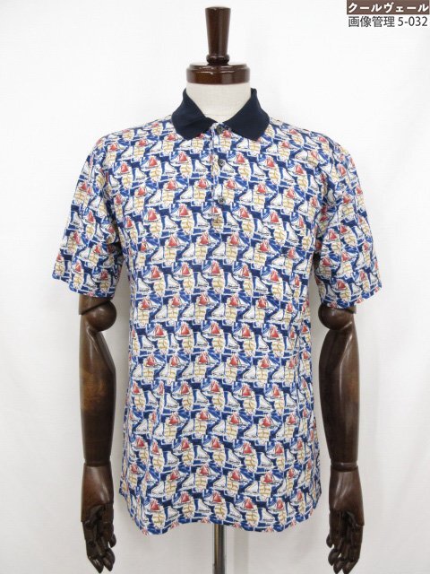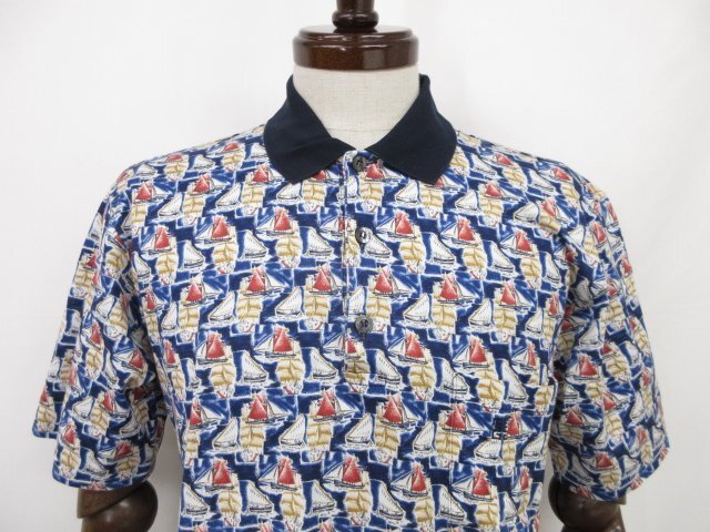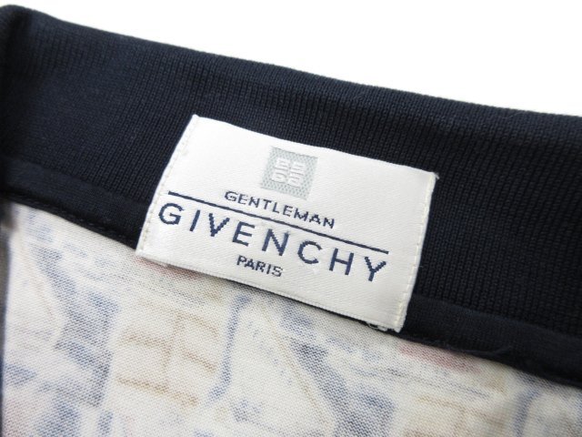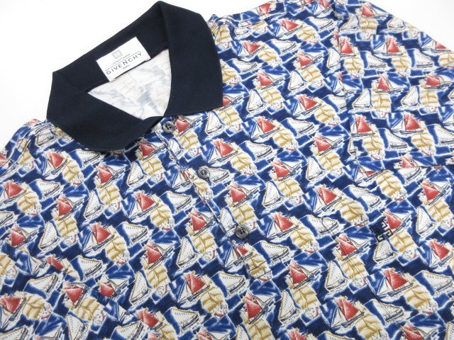 極美品【GIVENCHY ジバンシイ】コットン100% 船の総柄デザイン 半袖ポロシャツ カットソー (メンズ) sizeS ネイビー系 ◯35MT6017◯