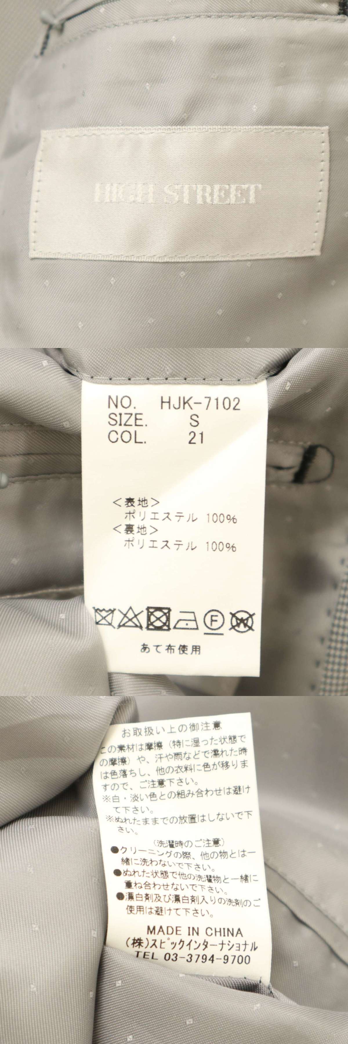 HIGH STREET ハイストリート 通年 千鳥格子★ 2B アンコン テーラード ジャケット Sz.S メンズ 灰