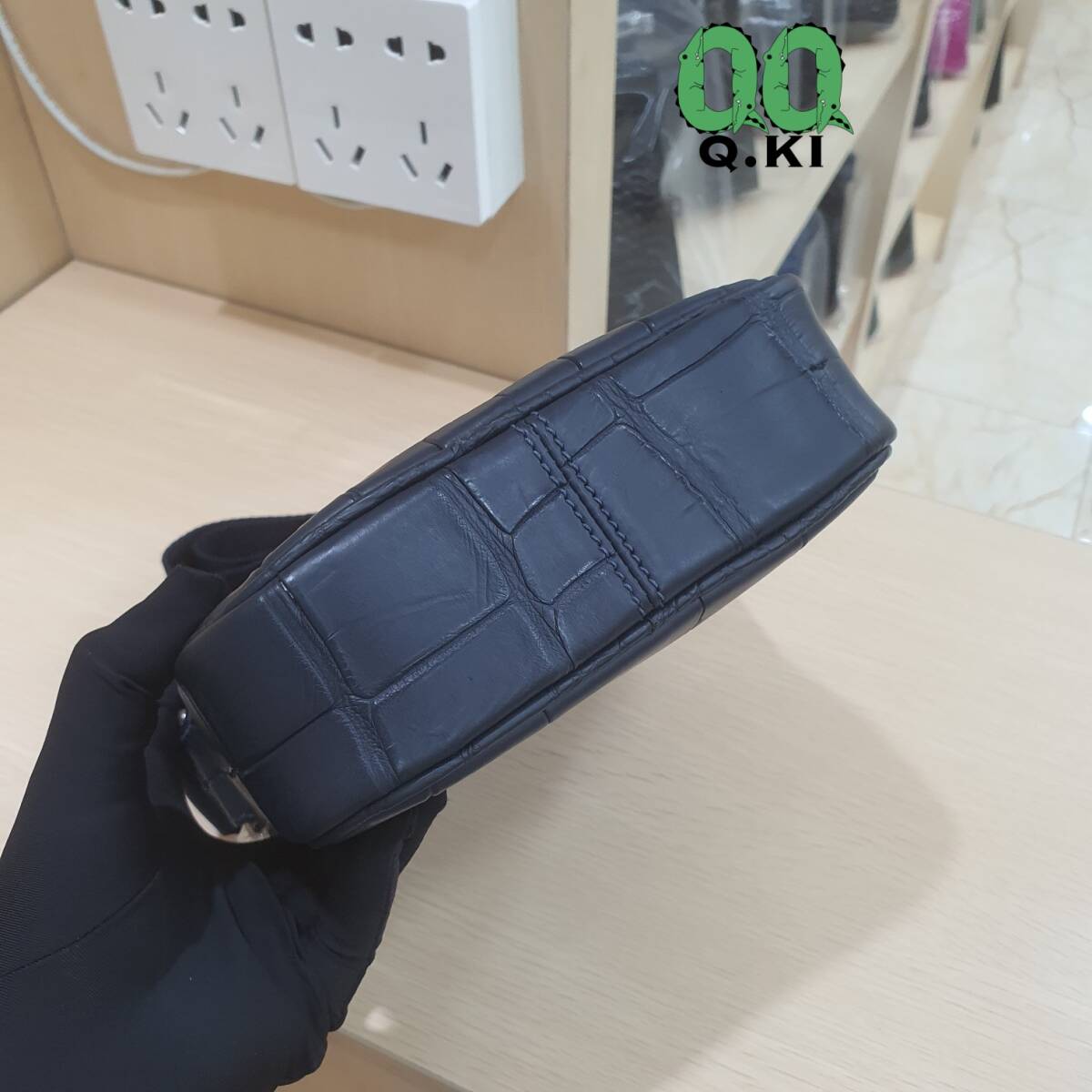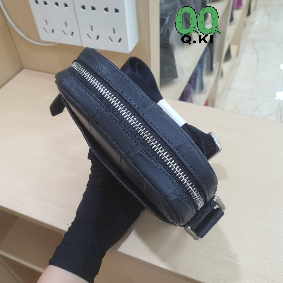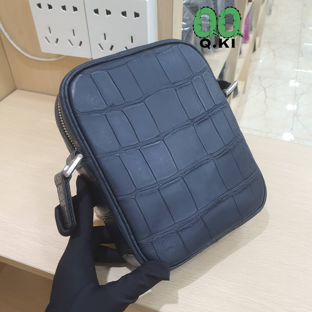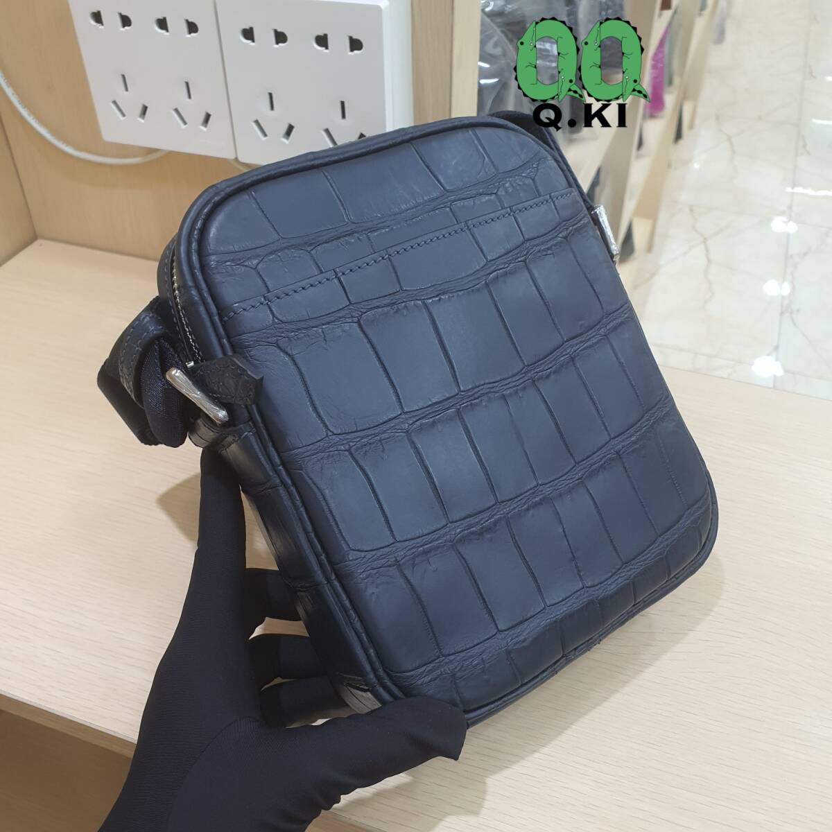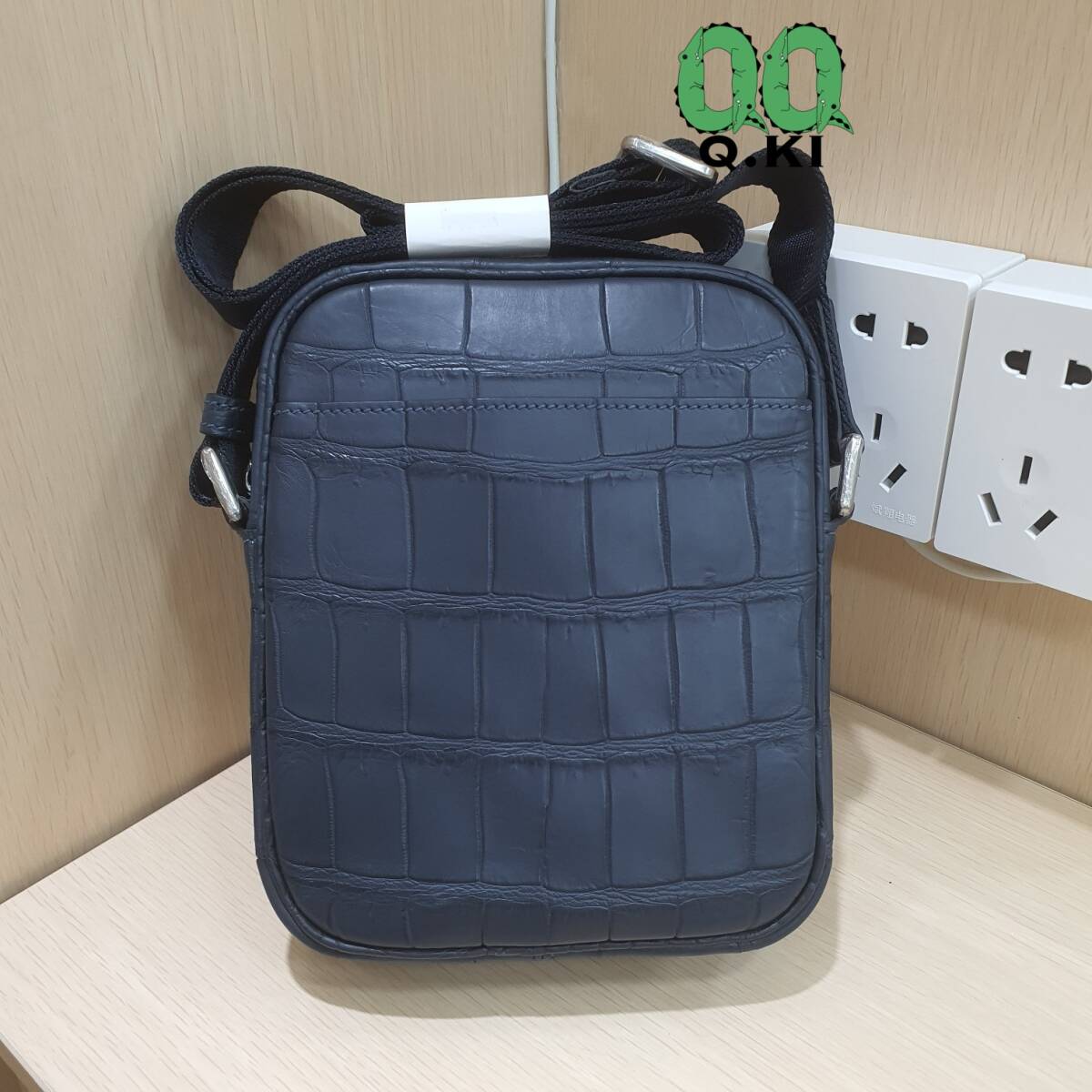マット仕上げ クロコダイル本革 メンズ ショルダーバッグ 肩掛け 斜めがけ 腹部革 ワニ革本物 メッセンジャーバッグ紺 カジュアル