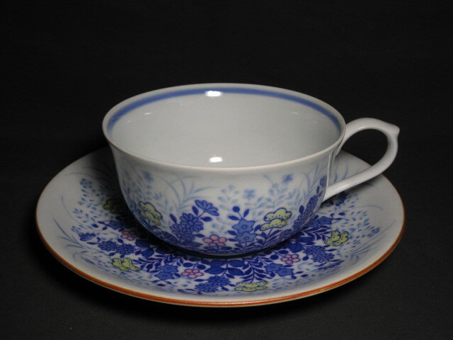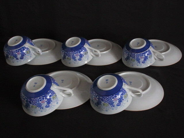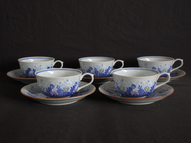 有田焼 八陶窯 西山作・秋草・珈琲碗皿5客組・和洋折衷