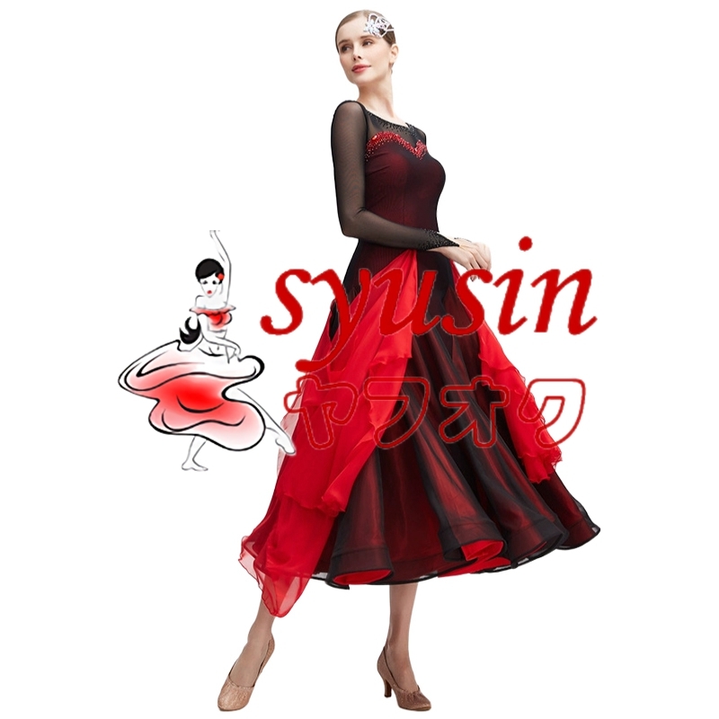 ★新品★ 社交ダンス衣装 レディース用社交ダンス衣装 モダン競技試合ドレス デモパーティ用高級品ダンスドレス  セミオーダー 2140