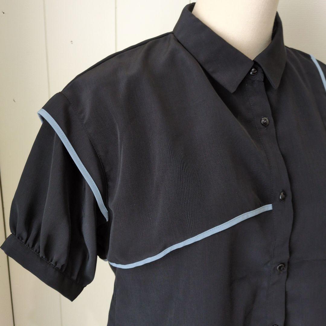 【商品名】配色パイピング アシンメトリーブラウス 半袖