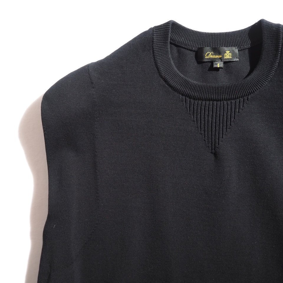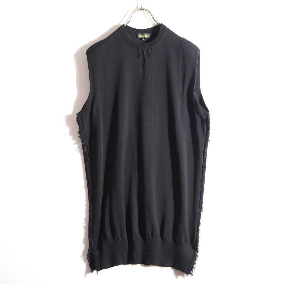 P4856f44 ▼Drawer ドゥロワー▼ 14Gコットンフリンジ ノースリーブロングニット ブラック 1 オーバーサイズ / 6518-199-0443 春夏