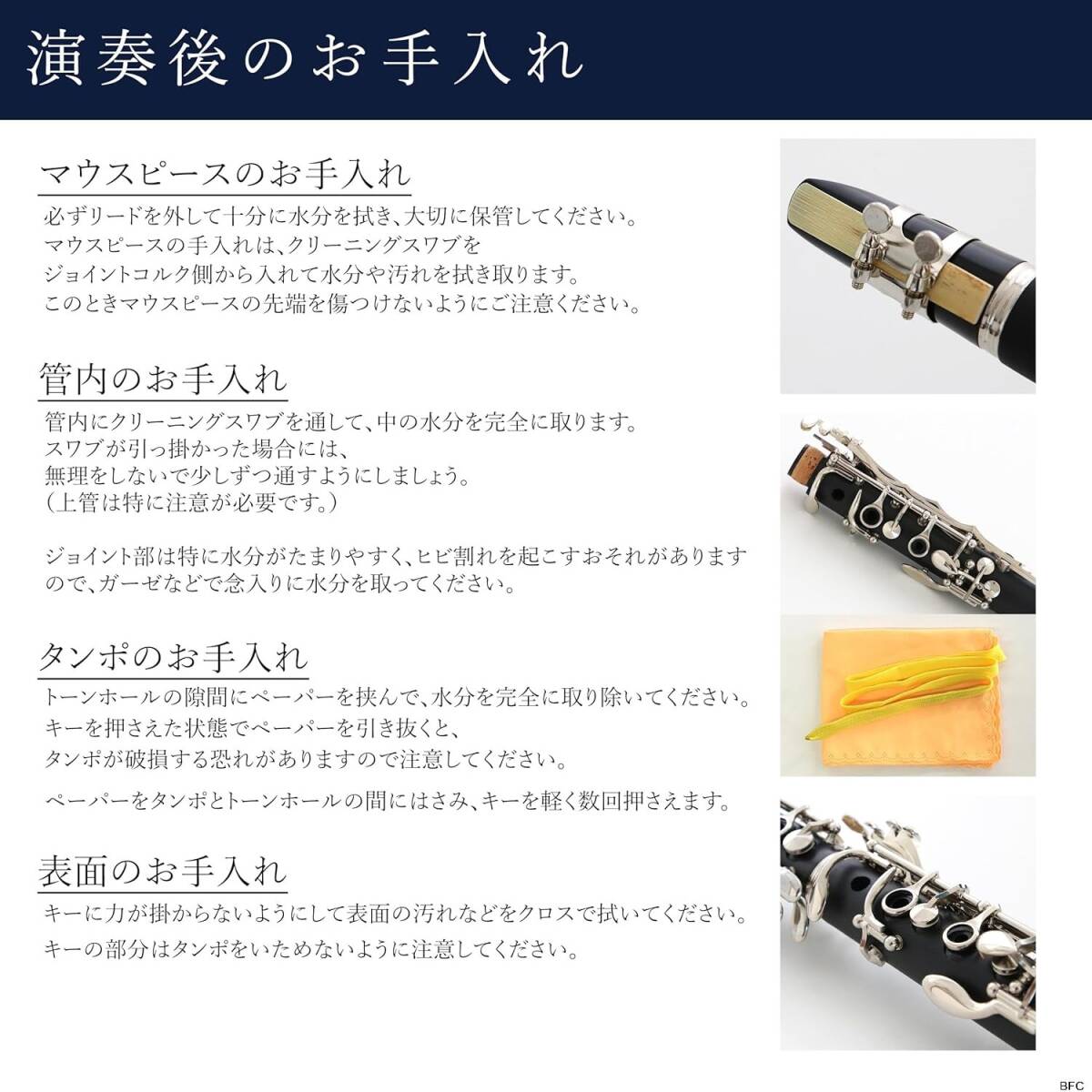 クラリネットの保管や持ち運びに必要なケースはもちろんのこと、メンテナンス用具も付属。