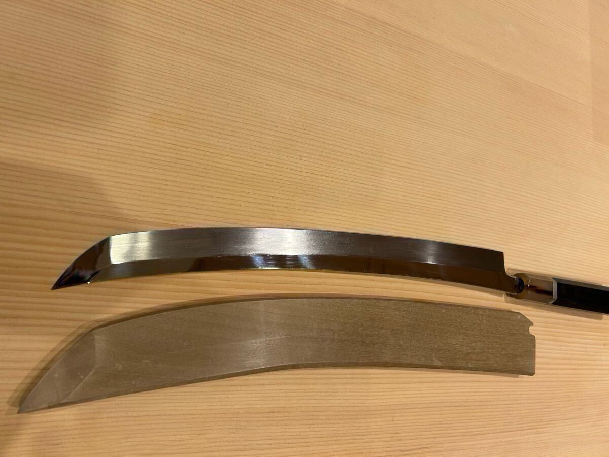 これ以上の反りは出来ない鬼ぞりです。未使用ですが、小傷あります。切れ味バツグン。特注鞘サービス