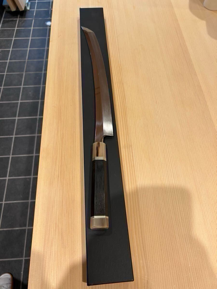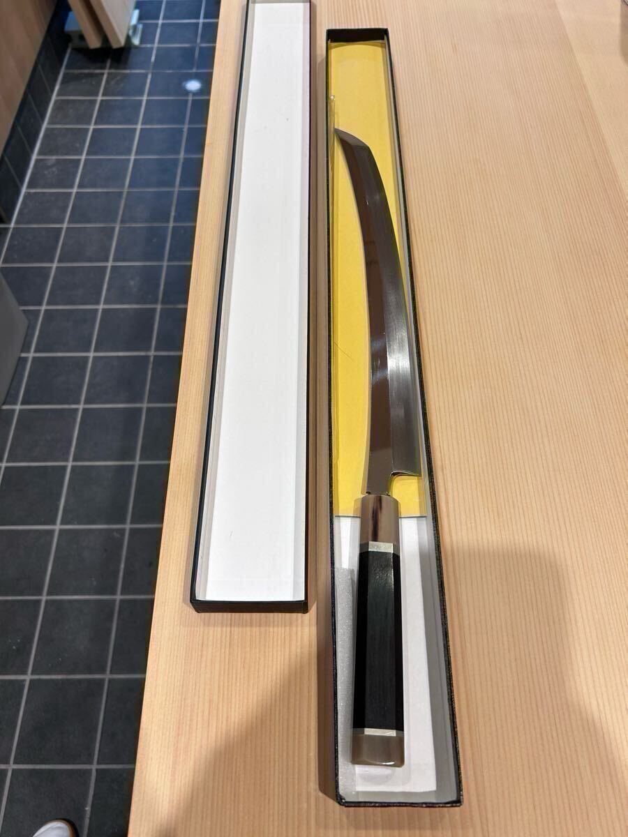 切付柳刃 V金10号 390mm 全鋼本焼 鬼ぞり平鏡面 黒檀柄