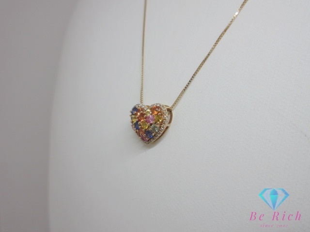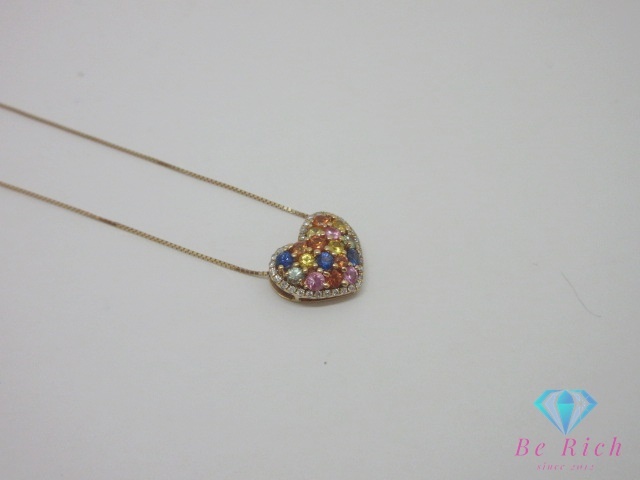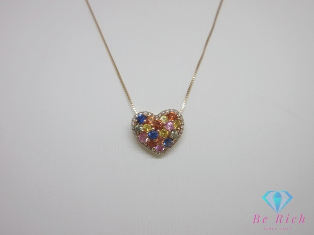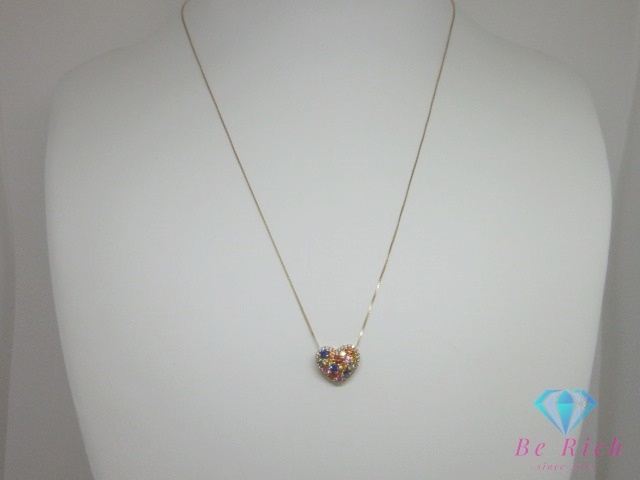 K18 PG カラーストーン 付 ハートモチーフ デザイン ネックレス のご紹介です | |||||