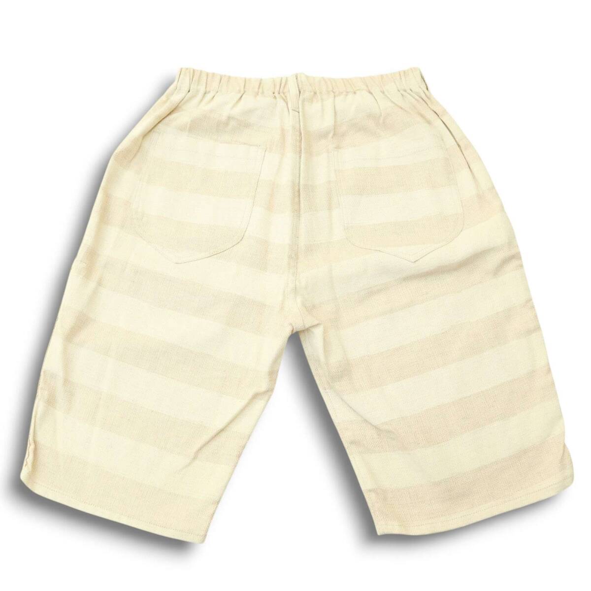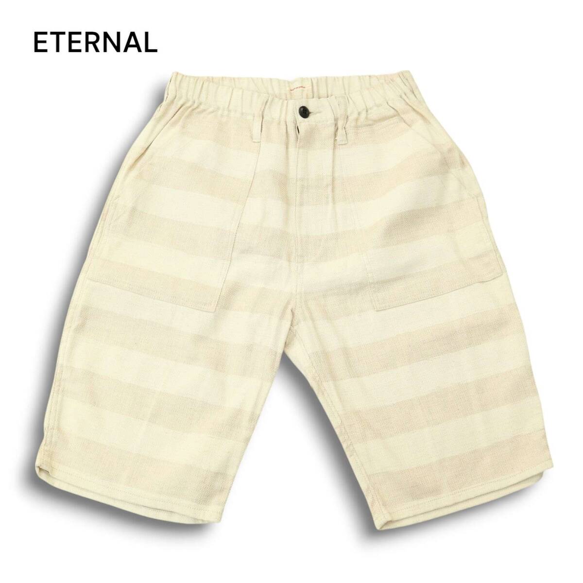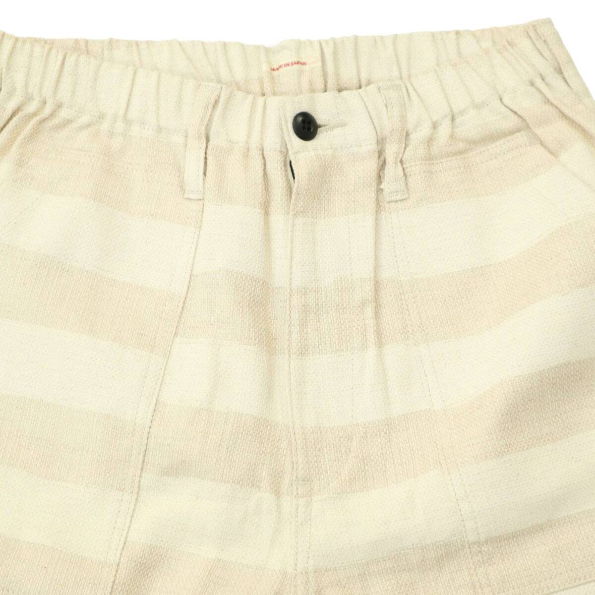 美品★ ETERNAL 備中倉敷工房 倉 エターナル 春夏 麻 リネン混★ ボーダー ストレッチ ショート パンツ Sz.L メンズ 日本製