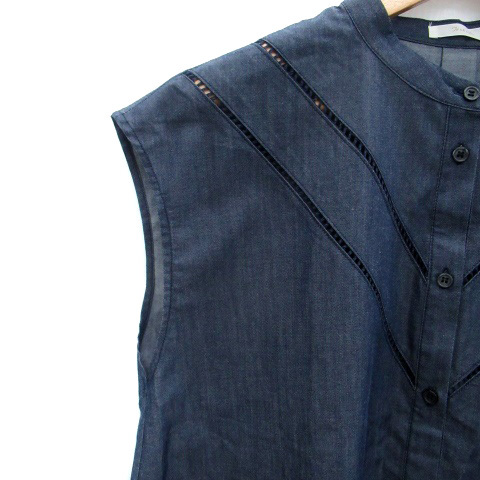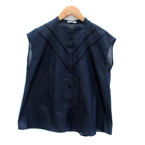テチチ Te chichi ダンガリーシャツ ブラウス バンドカラー ノースリーブ F 紺 ネイビー /HO9 レディース