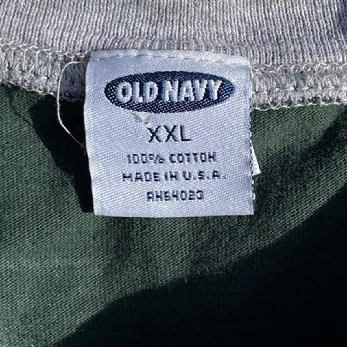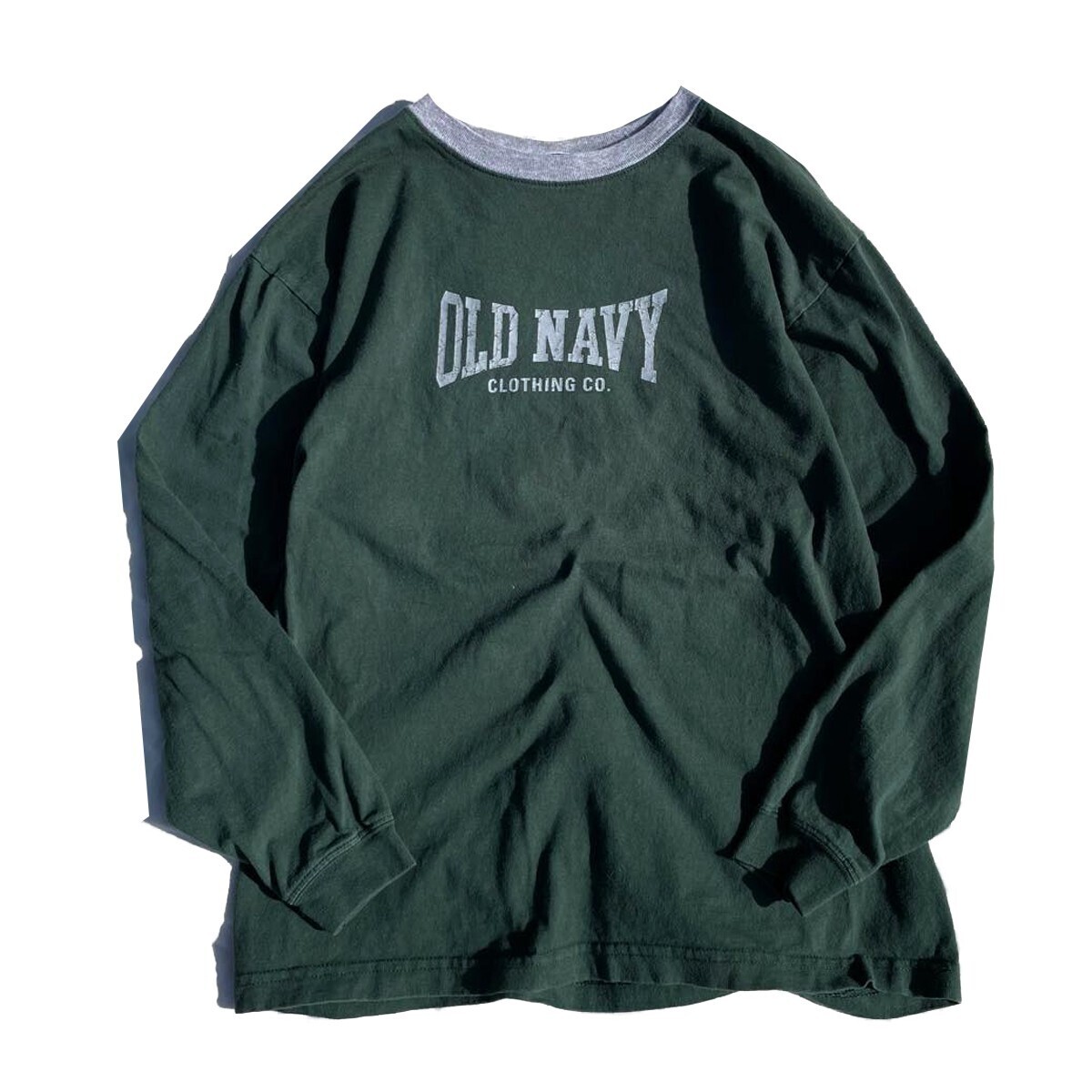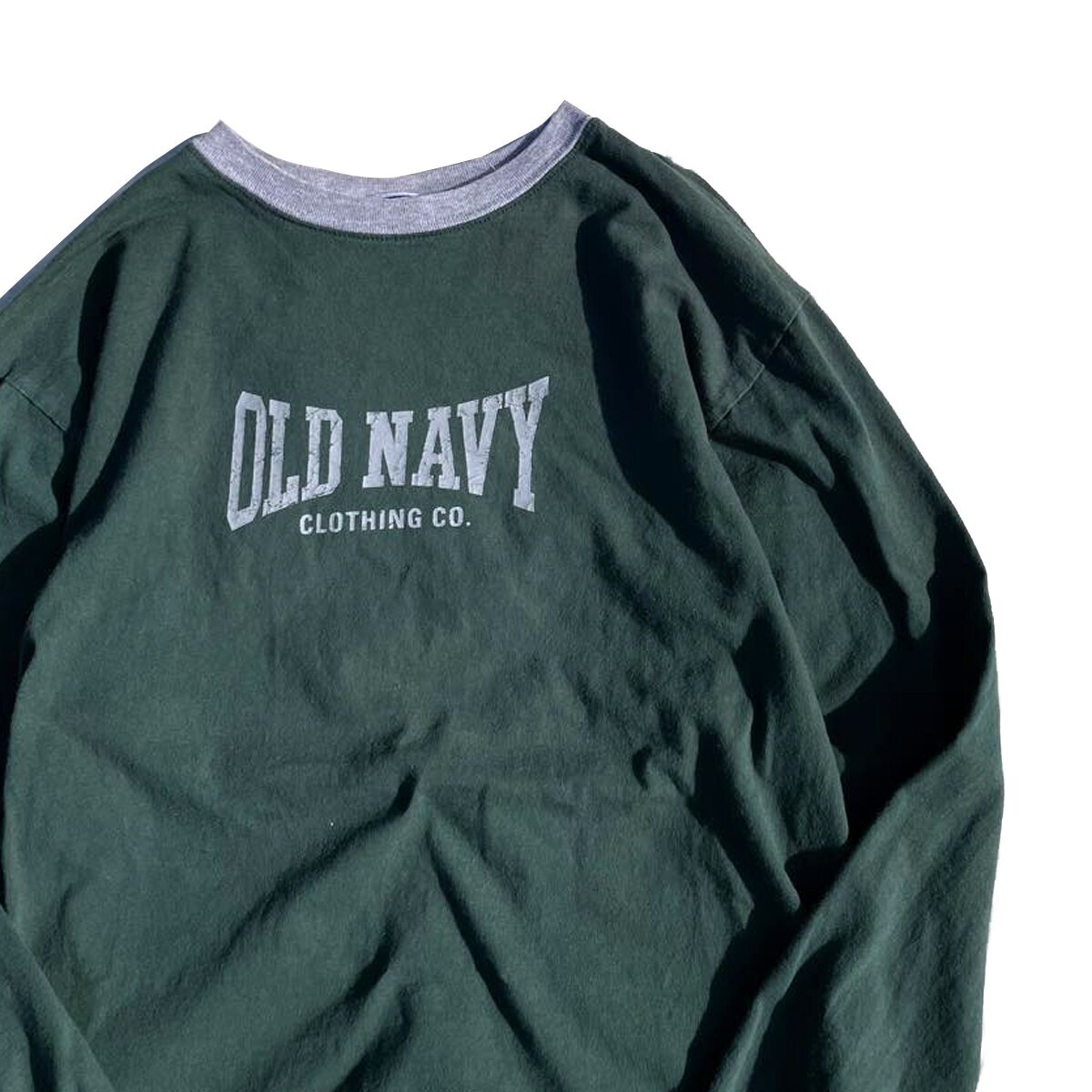 定番モデル! 90s USA製 OLD NAVY オールドネイビー ヴィンテージ ロゴ プリント 長袖 Tシャツ ロンT グリーン 緑 XXL メンズ? 古着 希少