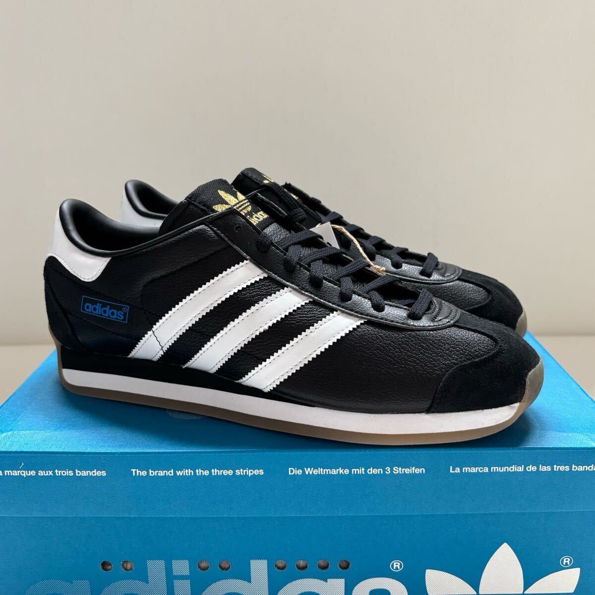 アディダス カントリーで特にプレミアムなバージョンの一つが、日本で作られたものだった。そんなルーツに敬意を表して、今季ローンチされたのがこのカントリー ジャパン。スエードのオーバーレイとレザーのディテールをあしらったしなやかなゴートレザーアッパーと、ソフトなEVAミッドソールが快適な履き心地をもたらす。見直しをしたアウトソールや細めに成型されたヒールカウンターなど、クラフトマンシップに則った細かなディテールが、このシューズの魅力を引き上げるカギとなっている。