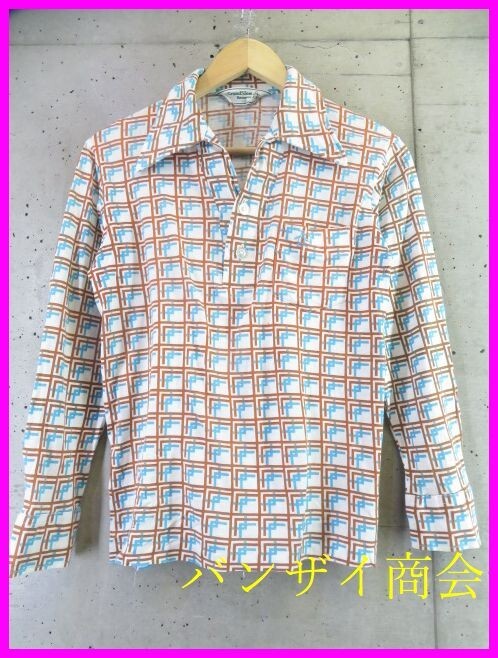 【送料300円可】4170b21◆70s80sヴィンテージ◆MUNSINGWEAR マンシング 総チェック 長袖ポロシャツ S/ゴルフジャケット/ベスト/昭和レトロ