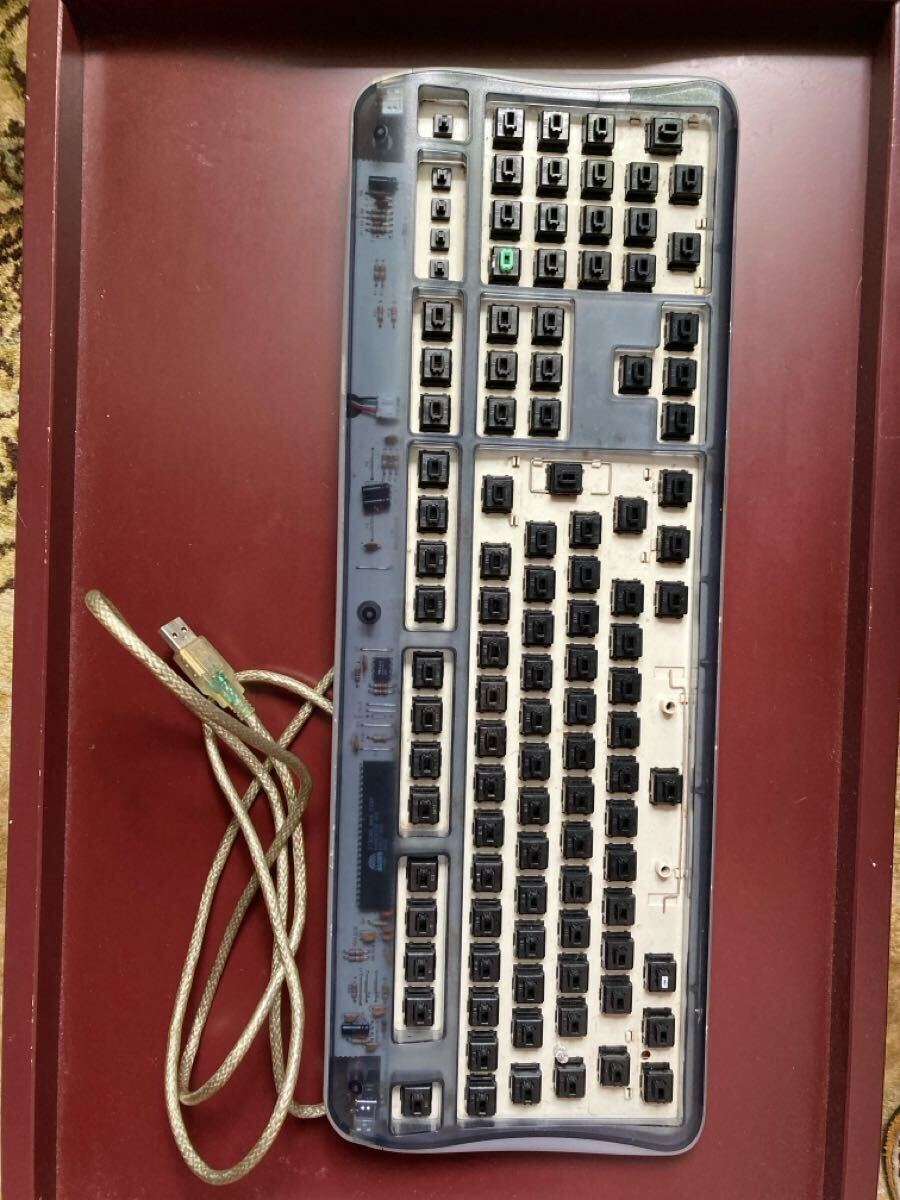 2001年発売のALPS軸採用のメカニカルキーボードから、キーキャップを取り外したものです。USB接続でMac 用、ASCII配列でした。