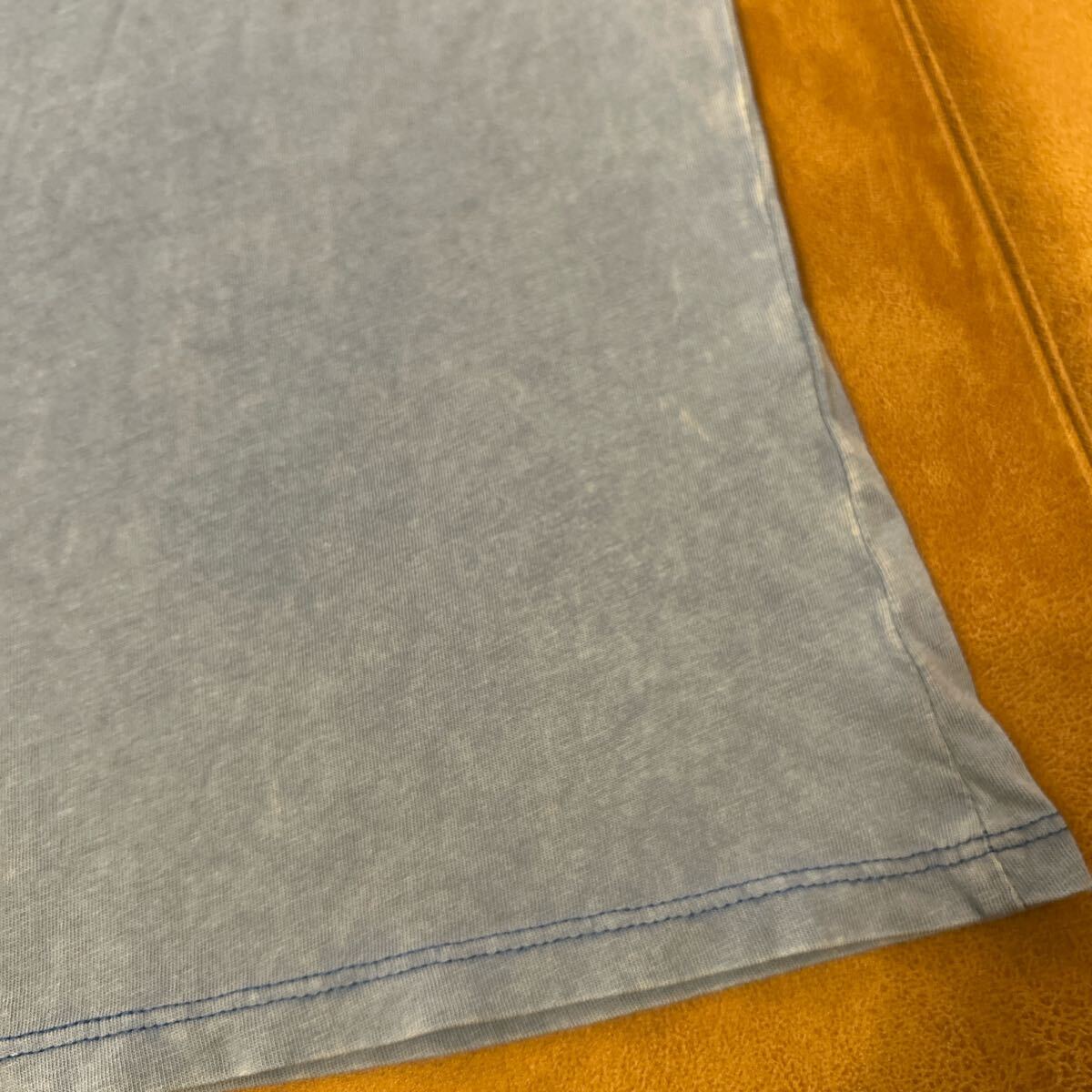ダメージのようなものは購入当初からのデザインです。ベロアっぽいロゴなどがおしゃれです。生地は薄めです。