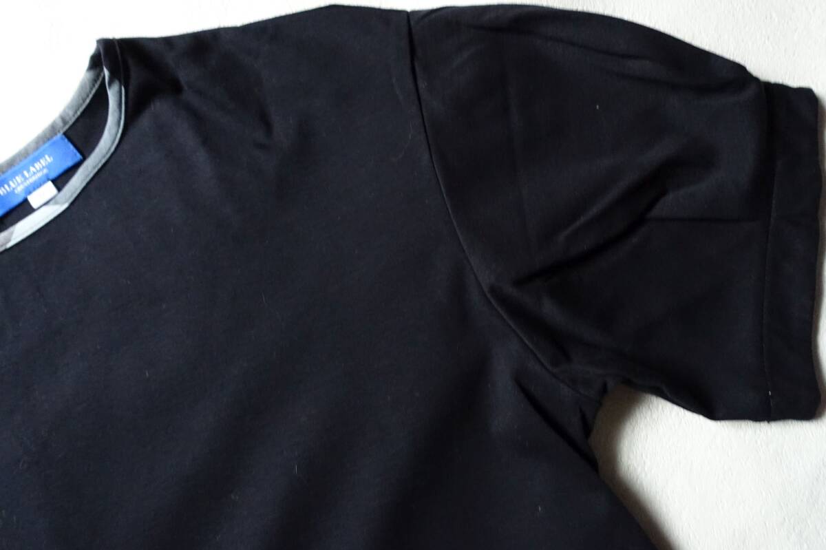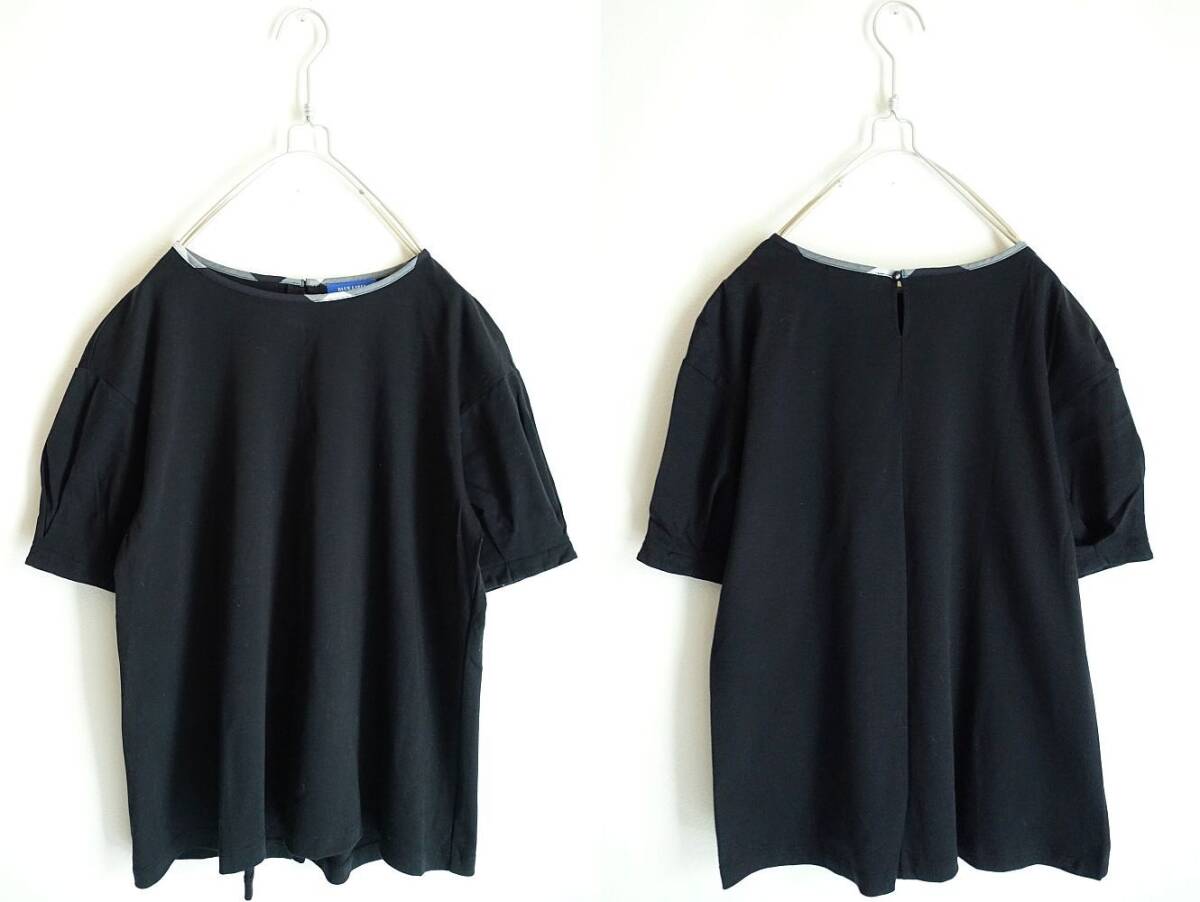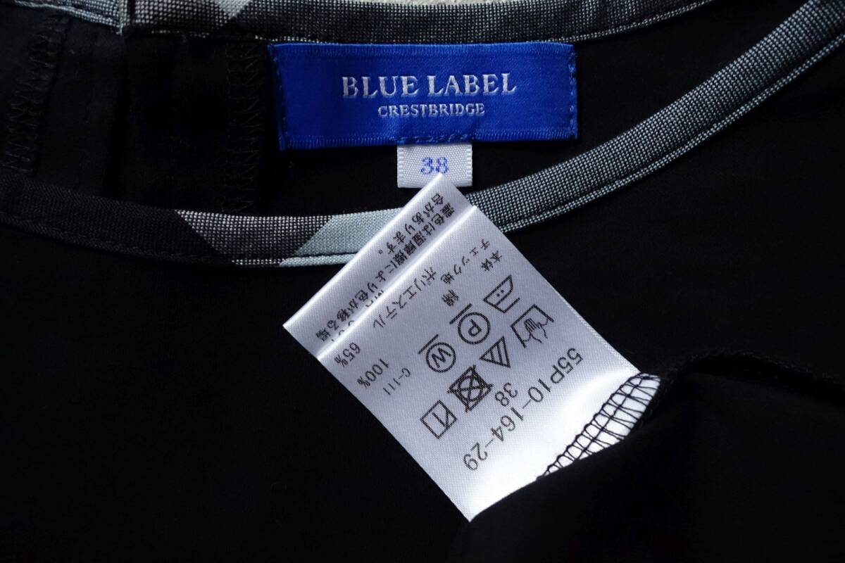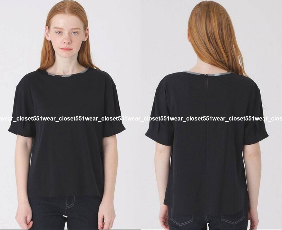 BLUE LABEL CRESTBRIDGEの着回し力抜群なシンプルカットソー。2022S/Sの定価14300円。ドロップショルダーの程よくゆとりがあるサイズ感。タックが入ったスリーブと、クレストブリッジチェック生地でトリミングした衿元がポイント。ハイゲージな編み機で編んでいるスムース素材。シルケット加工を入れることにより生地に布帛ライクなハリコシを実現。裾をインでもアウトでも着用しやすい着丈なので、スカートでもパンツでも、ボトムを選ばず着用頂けます。