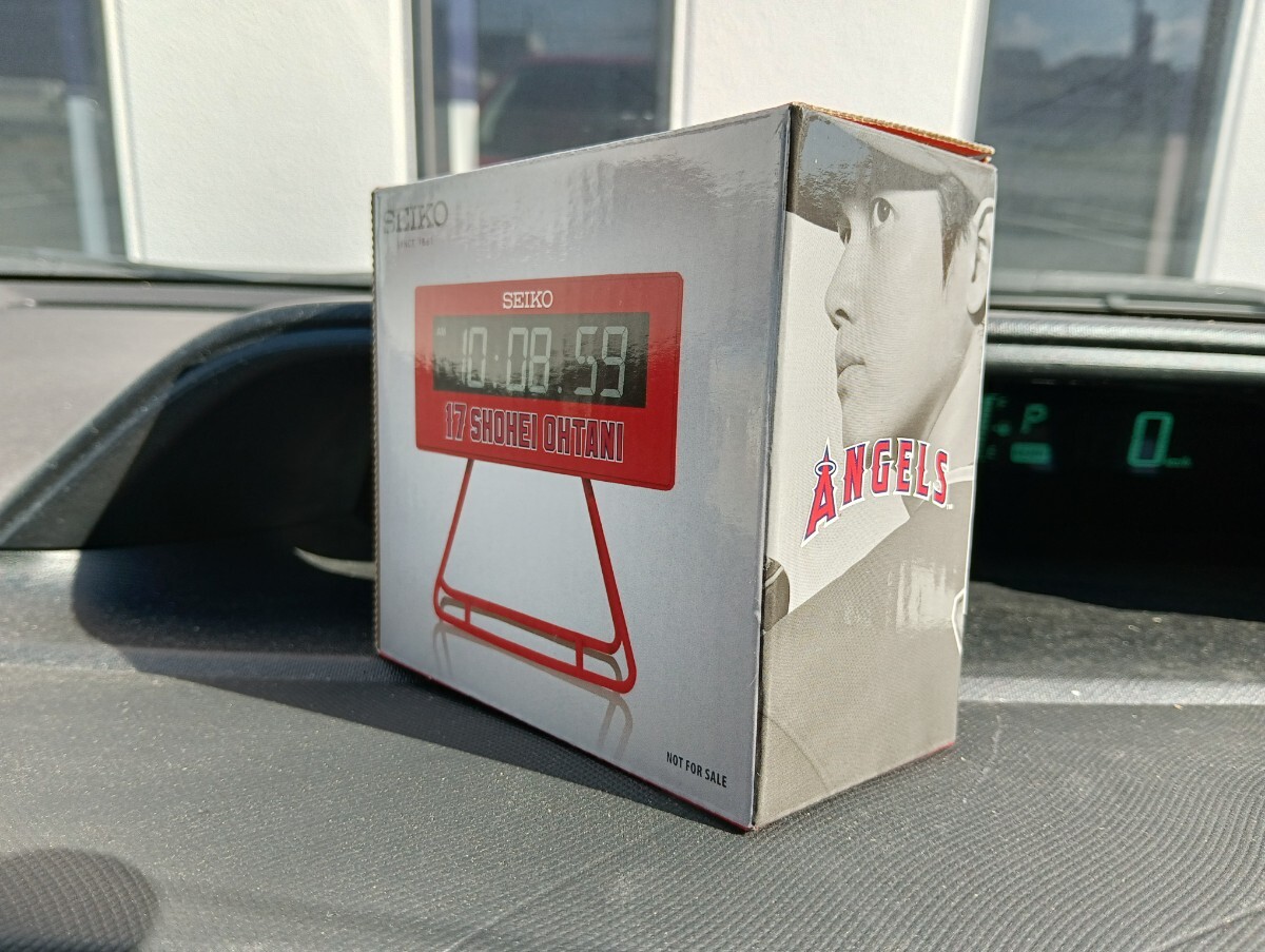 ご覧頂きありがとうございます。SEIKOアストロン購入時にプレゼントされました非売品大谷翔平アラーム時計非売品の新品未開封です。写真を撮影する為に初めて開封しました。テスト用単3電池2本付き。アラーム。ストップウォッチ。カレンダー付きの様です。取り扱い説明書有ります。エンジェルス時代の品物です。テスト用単3電池2本は使用不可の可能性が有ります。神経質な方と新規の方はご入札をご遠慮下さい。尚ご入札が有りましたらご入札を削除させて頂きます。又時間にルーズな方と評価が悪い方はご入札を削除させて頂く場合が有ります。ノークレームノーリターンでよろしくお願いします。発送は60センチサイズを予定しています。