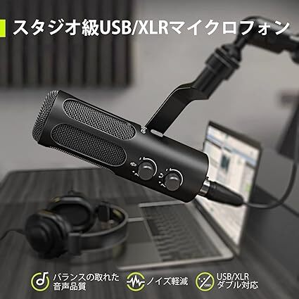 ダイナミックマイク USB/XLR接続可能 単一指向性 ノイズ低減 USBケーブル付属 PC/プレステ/オーディオミキサー対応
