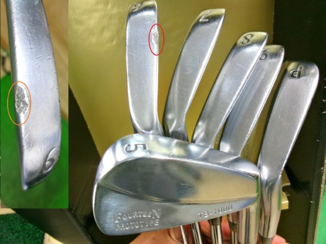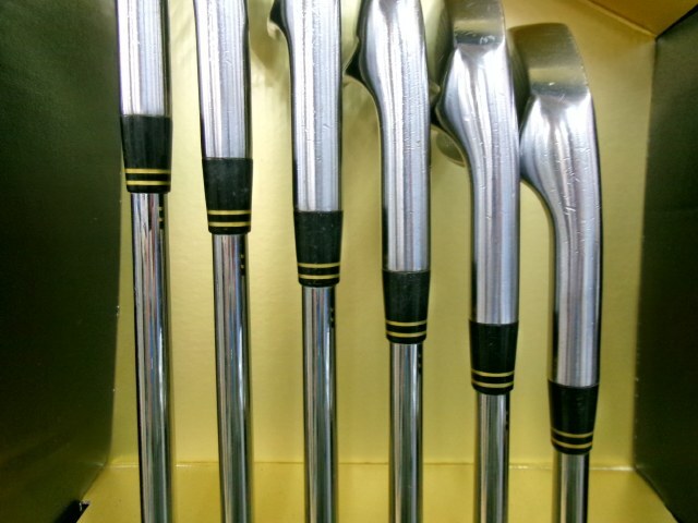 当商品はリシャフト品でラベルシールが無い為、正確な種類が分かりかねます。 こちらはリシャフト品です。 6のソールに凹みがございます。 グリップは純正外で各番手とも使用できます。 フェース面は打球傷と当たり傷がございます。 バックフェースは当たり傷が適度にございます。 シャフトは各番手に細かいこすれ傷が適度にございます。 |