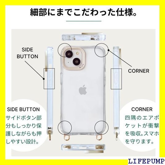 wizu ウィズユー iPhone15 / iPhone14 / iPhone13 ケース クリア iPhoneケース ストラップ ショルダー スマホショルダー スマホストラップ クリアケース アイフォン15 14 13 スマホケース パープル 1348