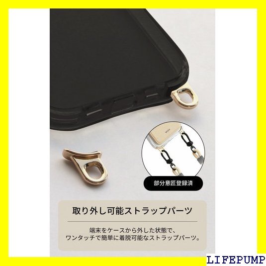 【ストラップパーツ付き】ケースの底部分に取り外し可能なストラップパーツ付き。端末をケースから外した状態で、ワンタッチで簡単に着脱可能。(パーツをつけるとき:ケースの内側から差し込む、パーツを外すとき:ケースの外側から押し出す)