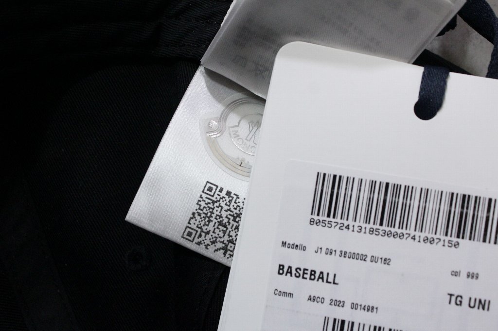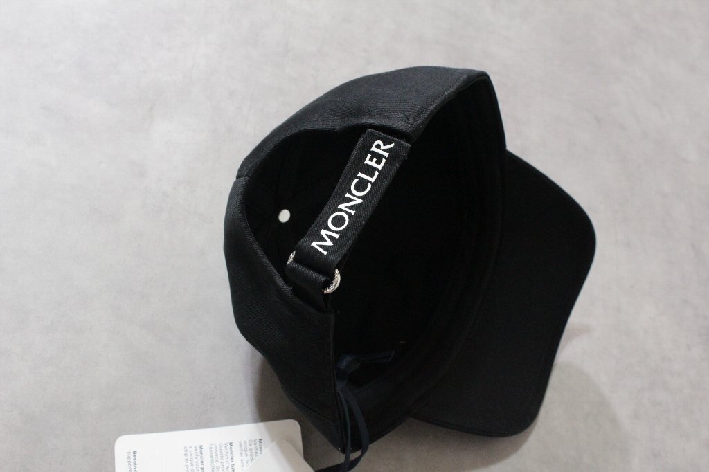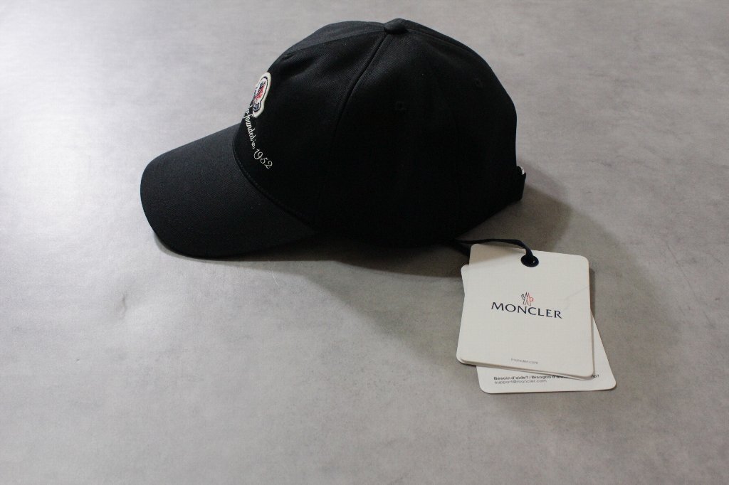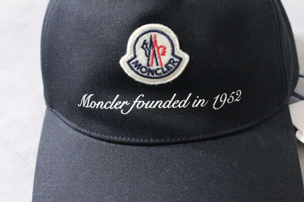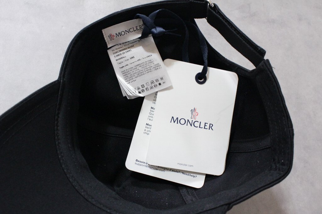 MONCLER★新品5万円 モンクレール フロントロゴ入りベースボールキャップ ブラック コットンギャバジン素材 フリーサイズ